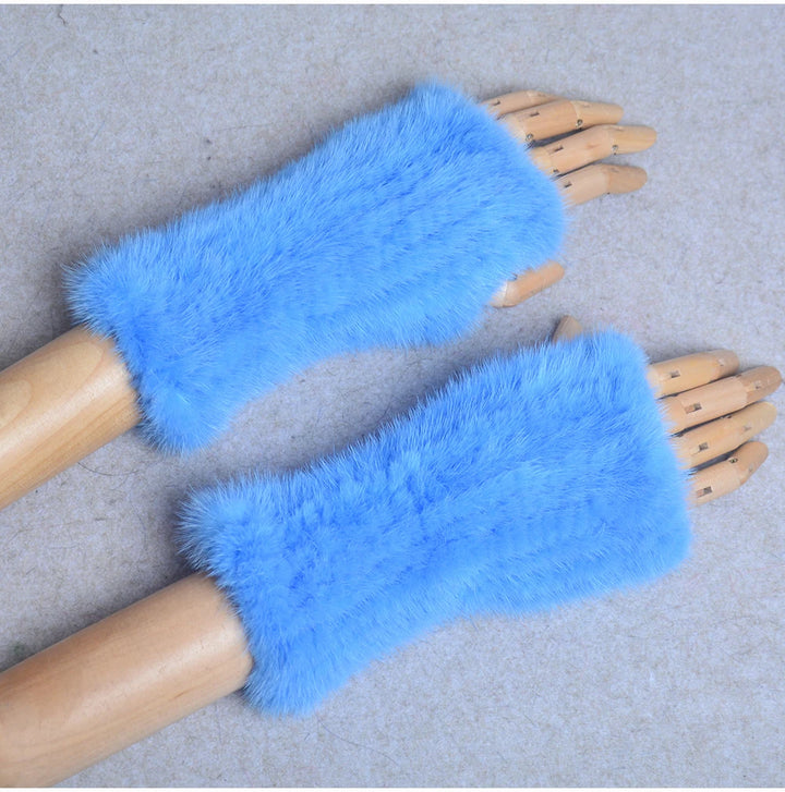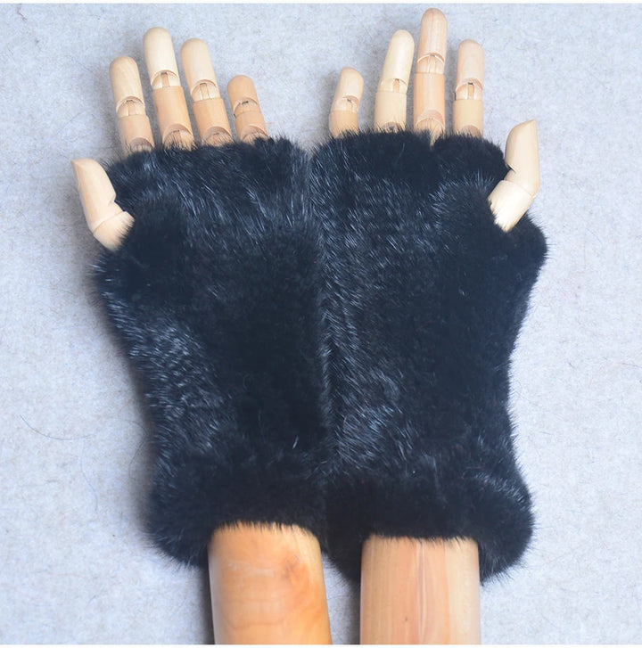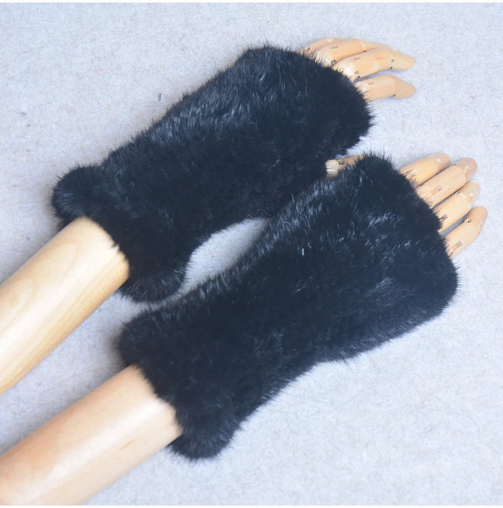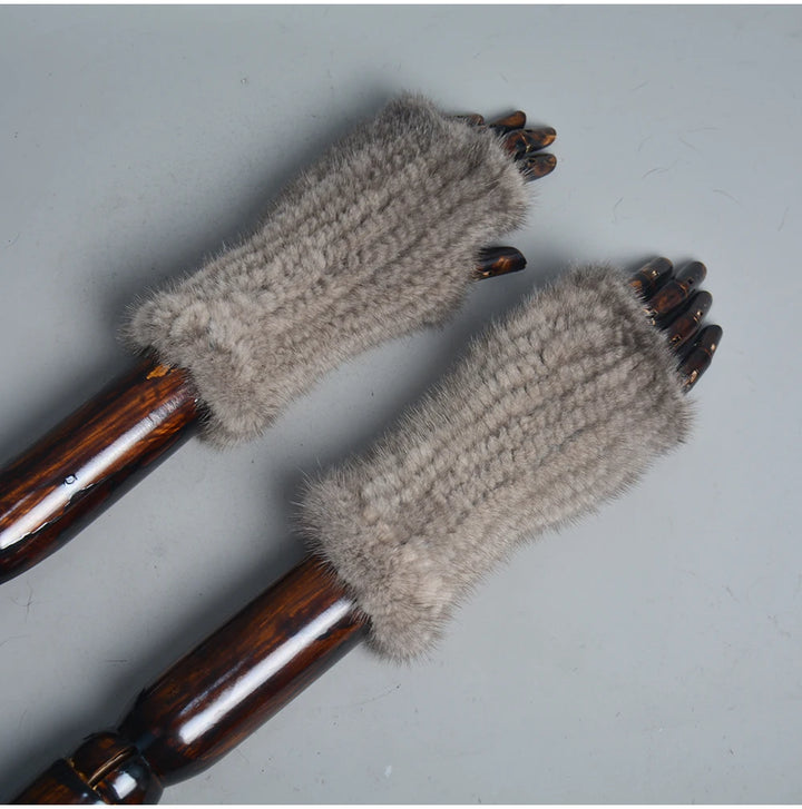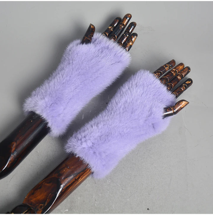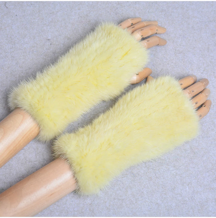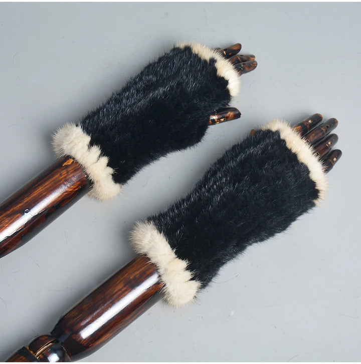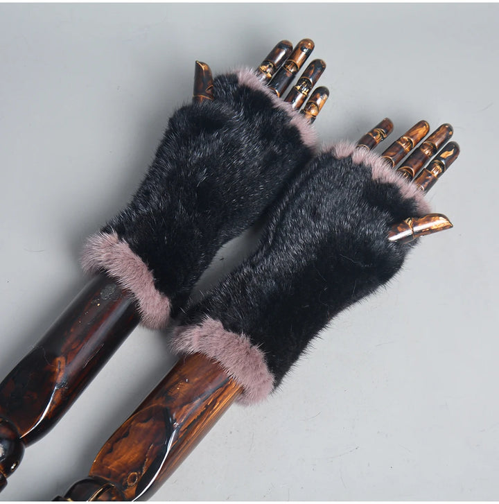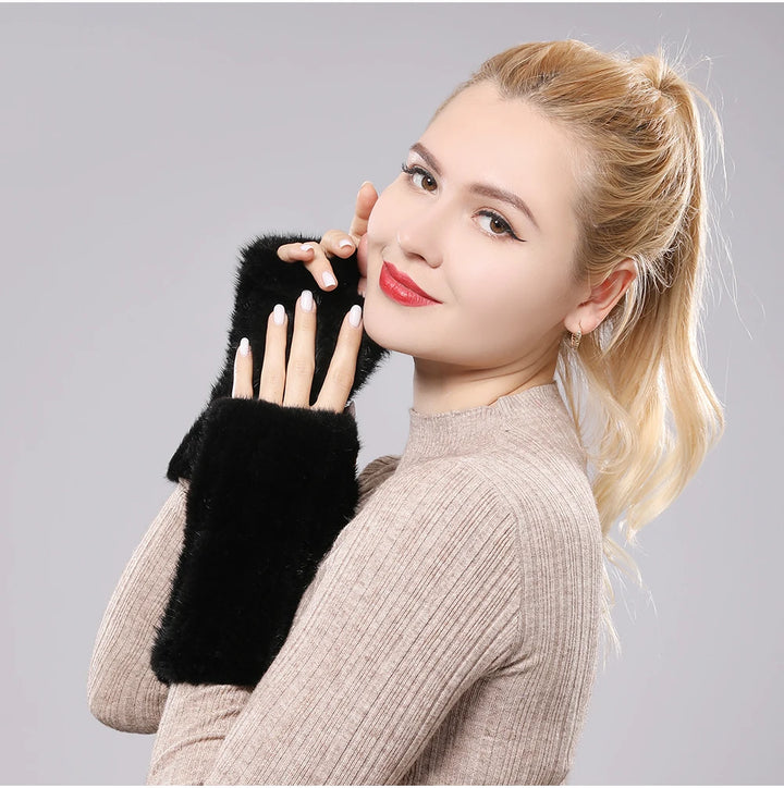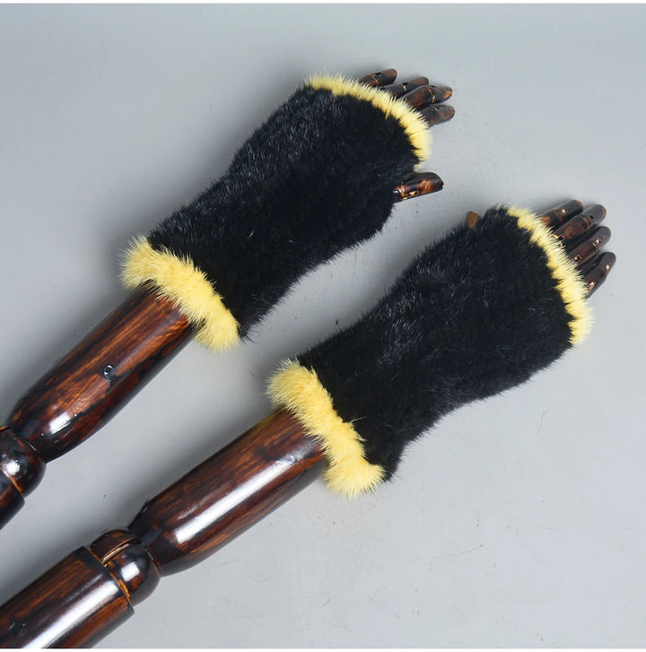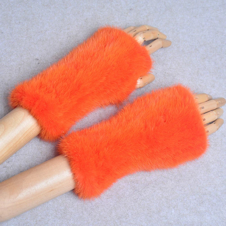 New Women 100% Real Genuine Knitted Mink Fur Mittens Winter Warm Lady Real Fur Fingerless Gloves Handmade Knit Mink Fur Mitten
