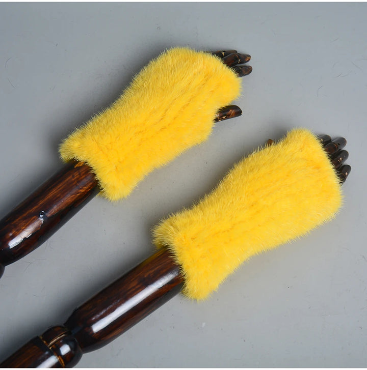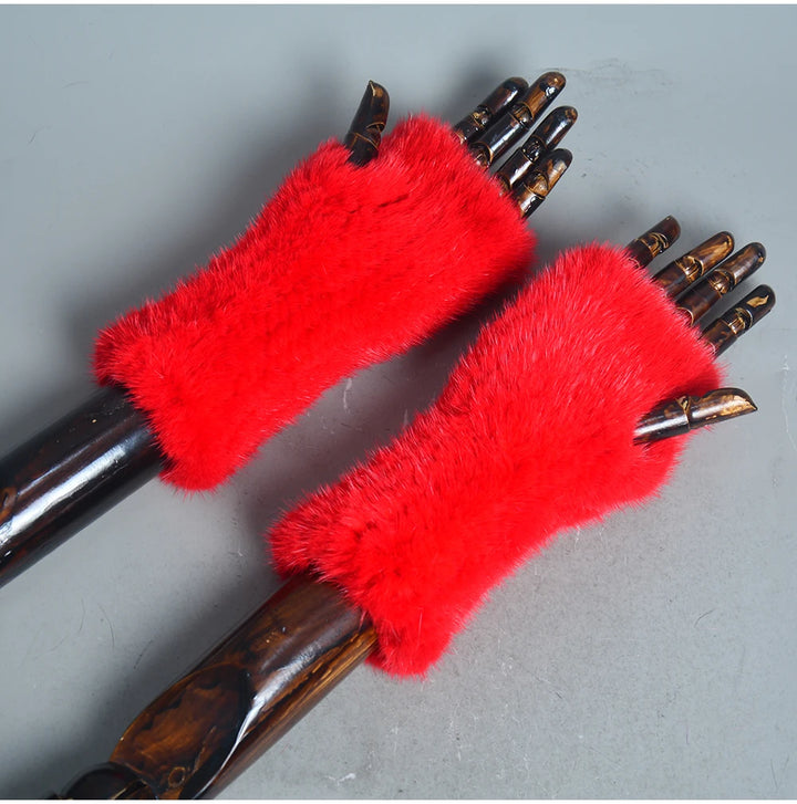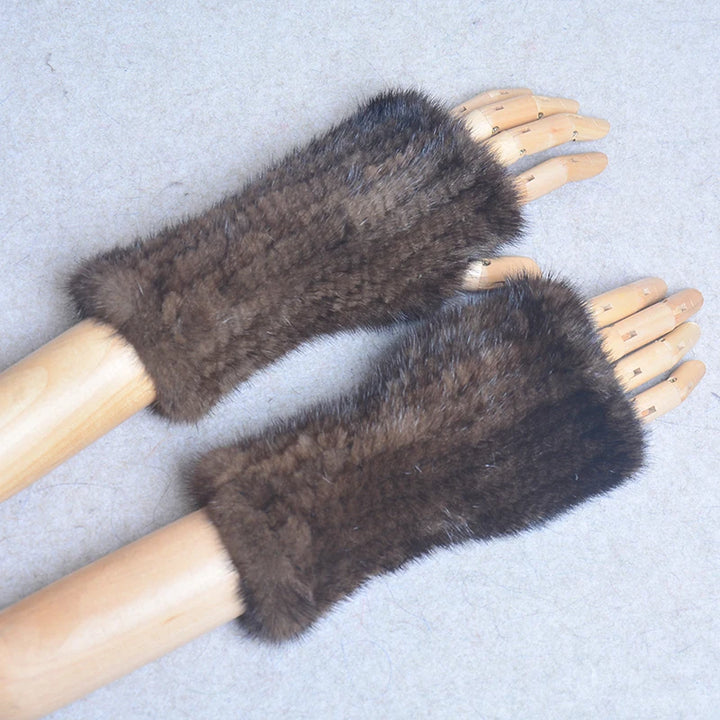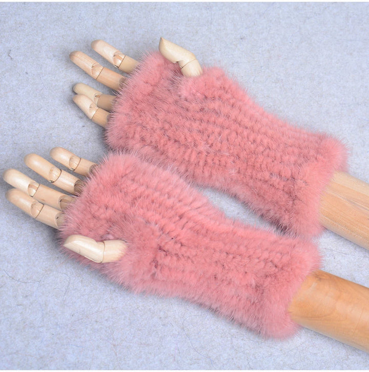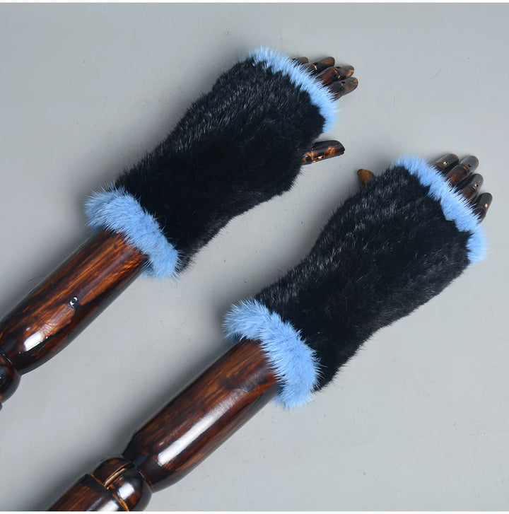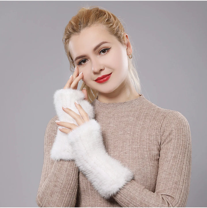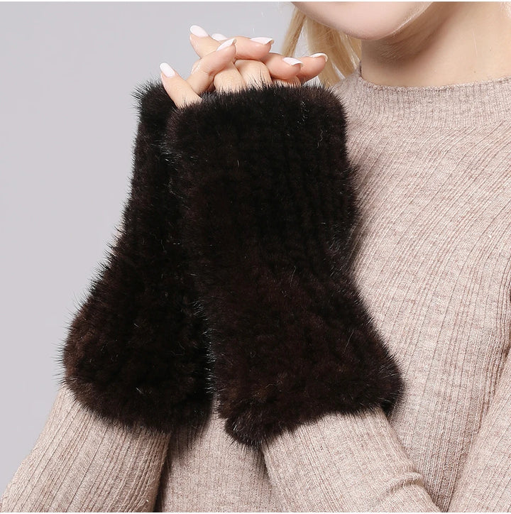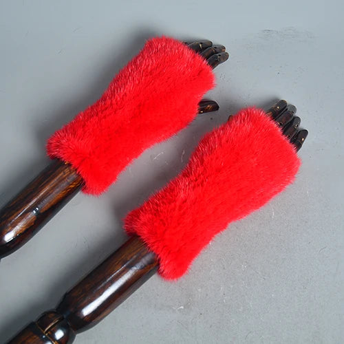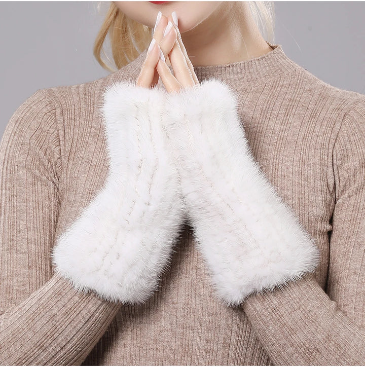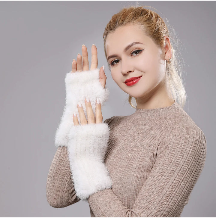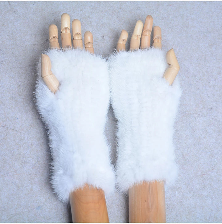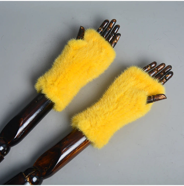 New Women 100% Real Genuine Knitted Mink Fur Mittens Winter Warm Lady Real Fur Fingerless Gloves Handmade Knit Mink Fur Mitten