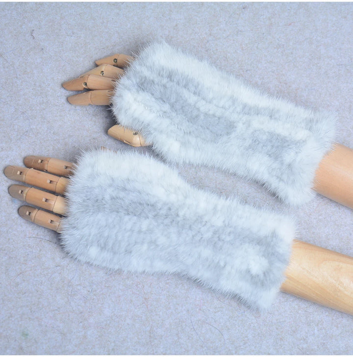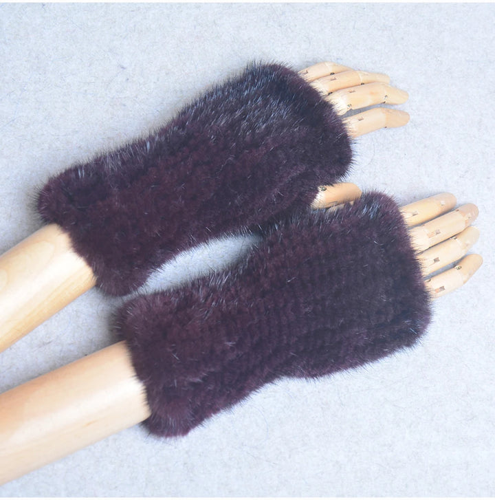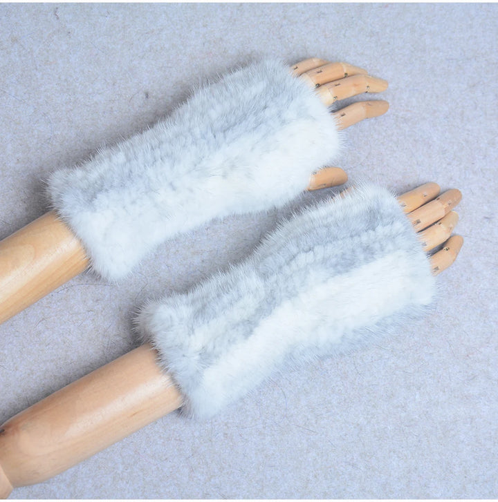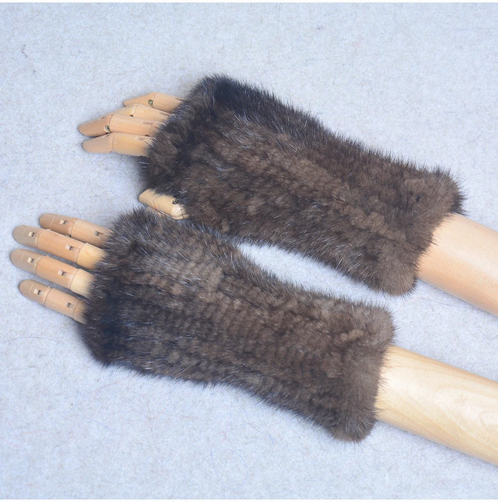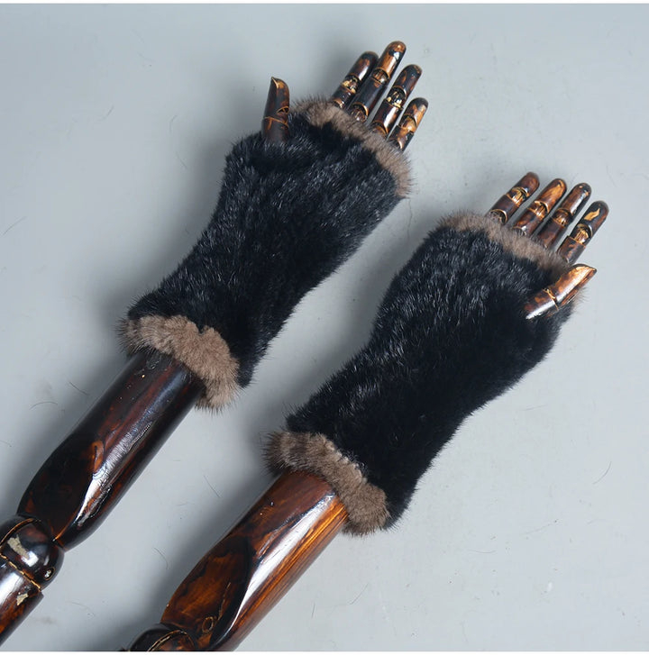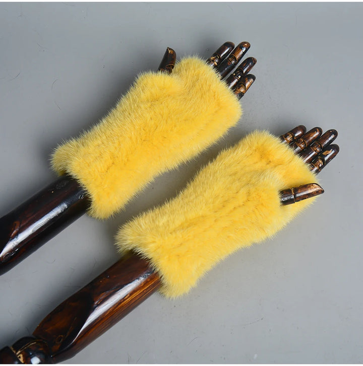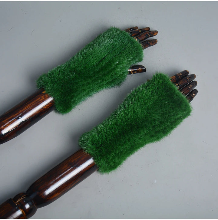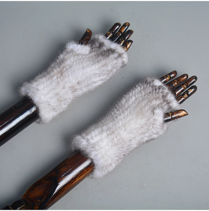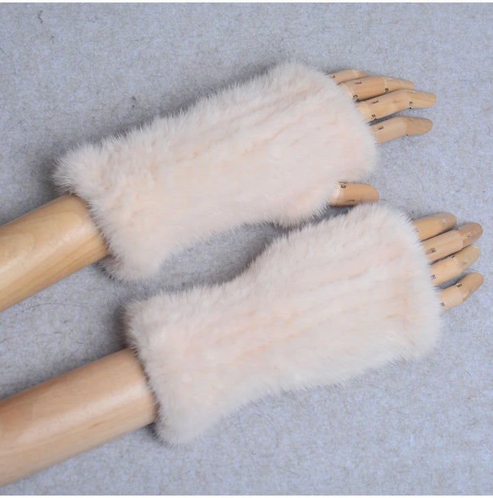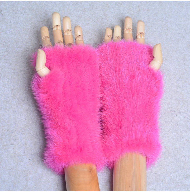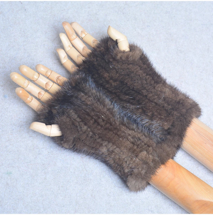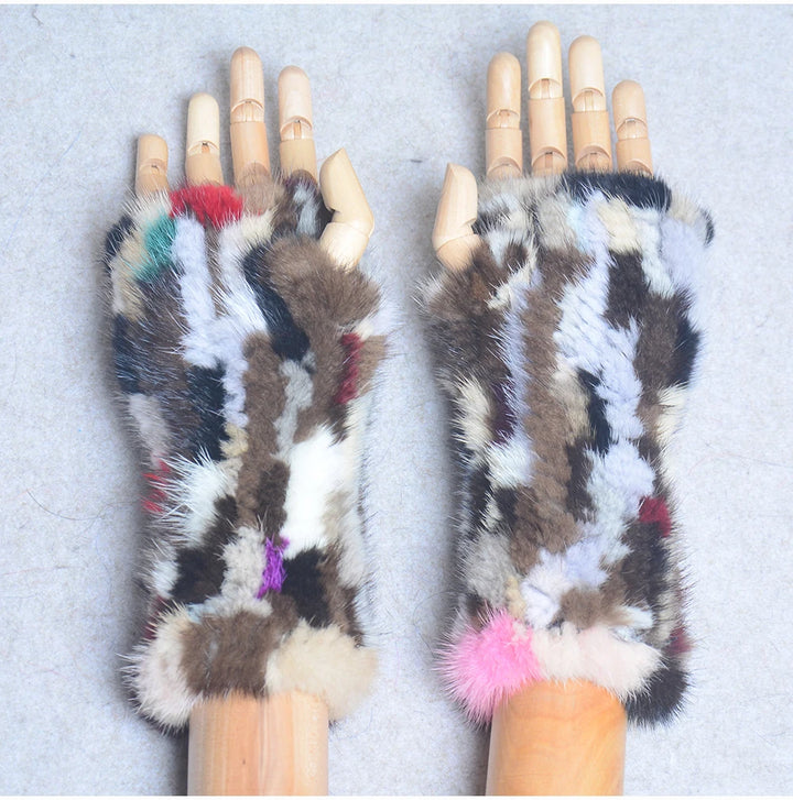 New Women 100% Real Genuine Knitted Mink Fur Mittens Winter Warm Lady Real Fur Fingerless Gloves Handmade Knit Mink Fur Mitten