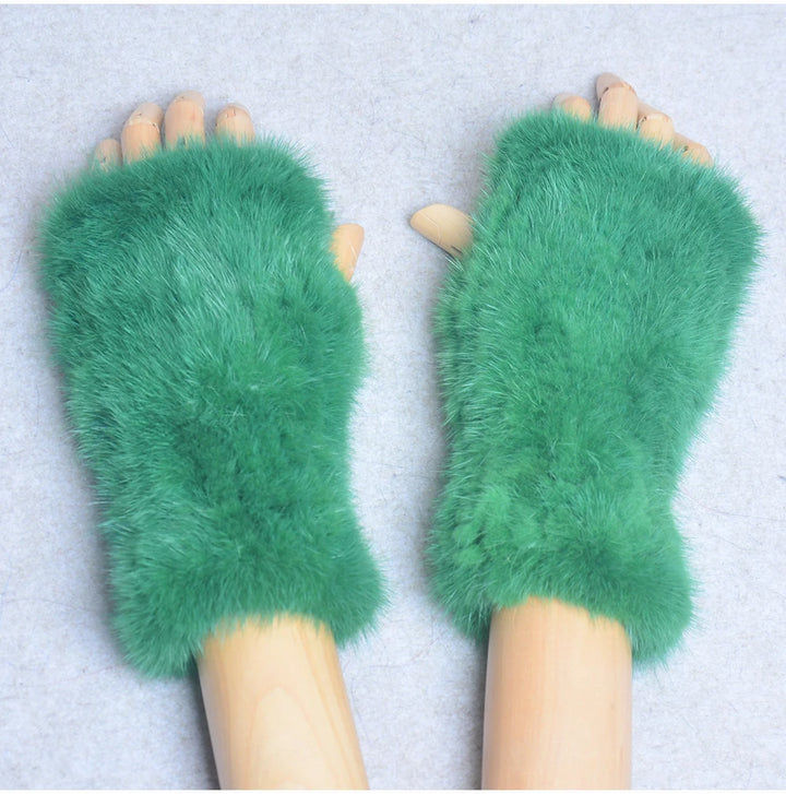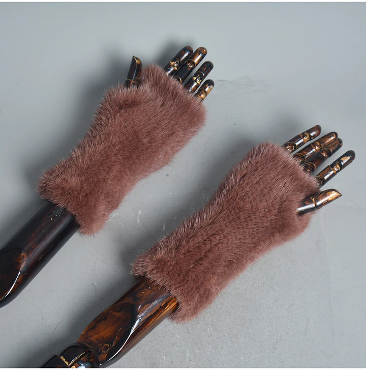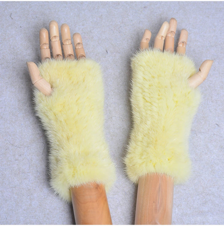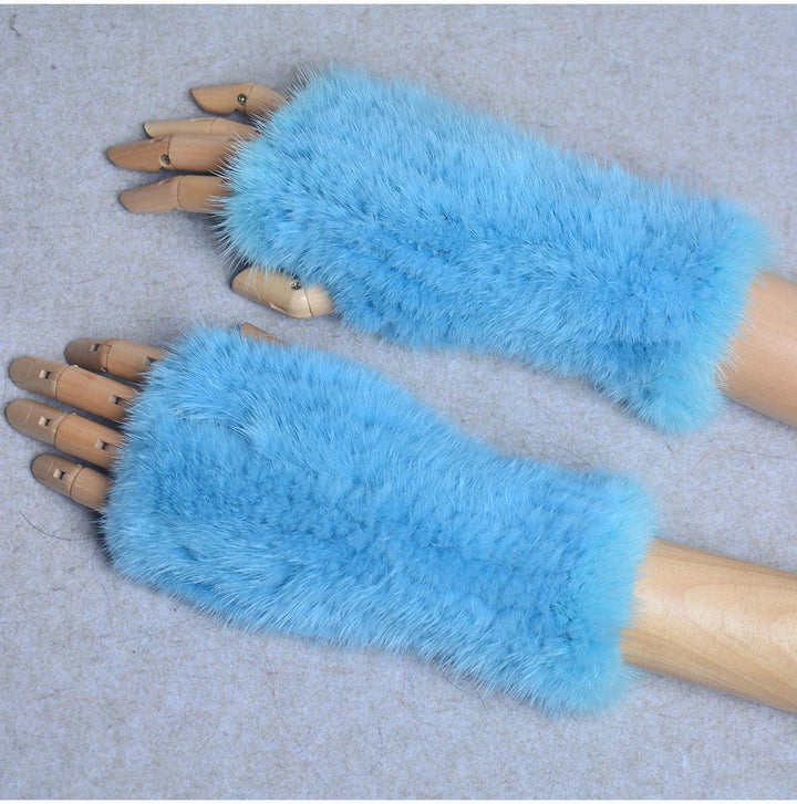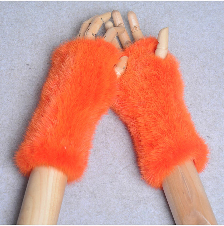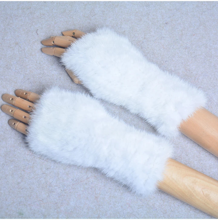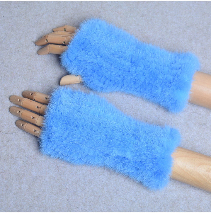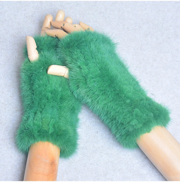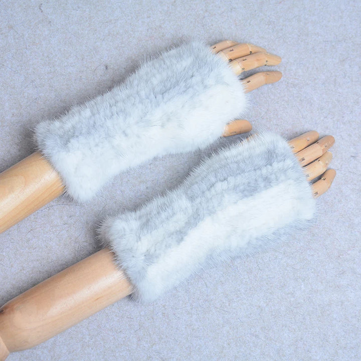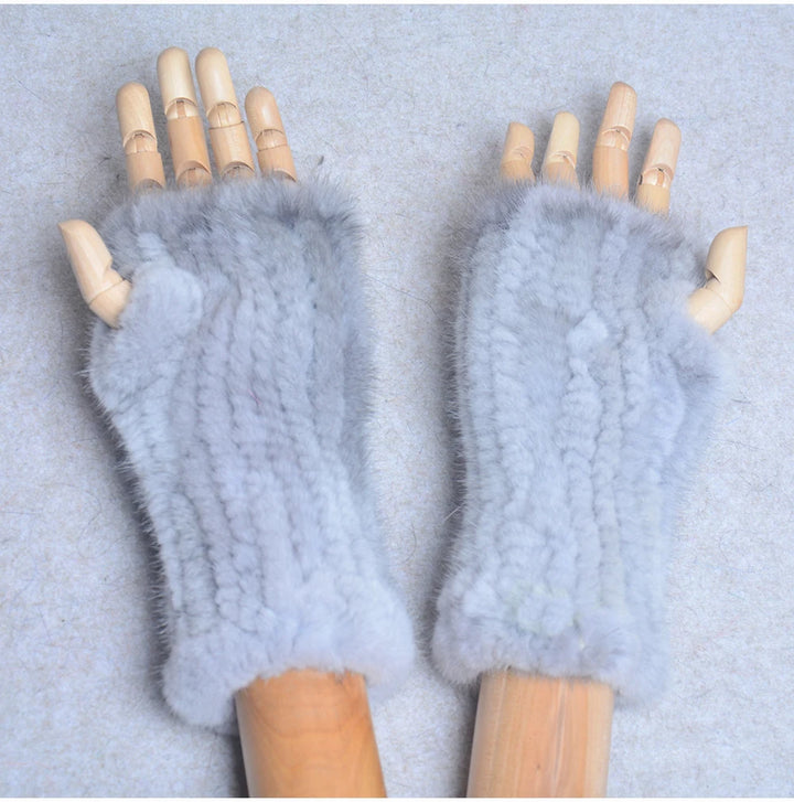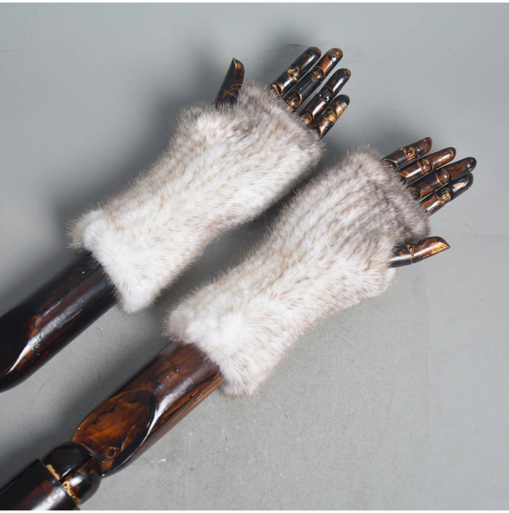 New Women 100% Real Genuine Knitted Mink Fur Mittens Winter Warm Lady Real Fur Fingerless Gloves Handmade Knit Mink Fur Mitten