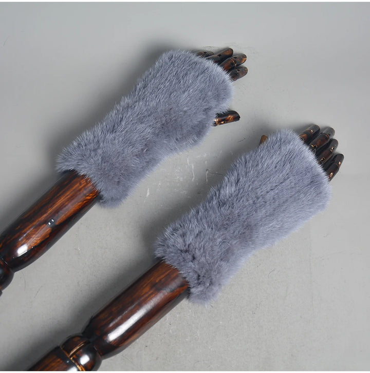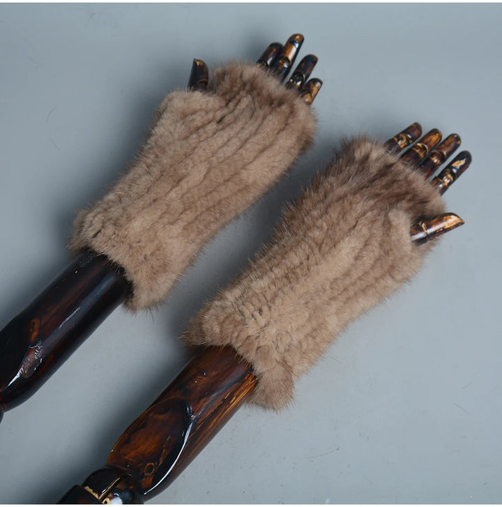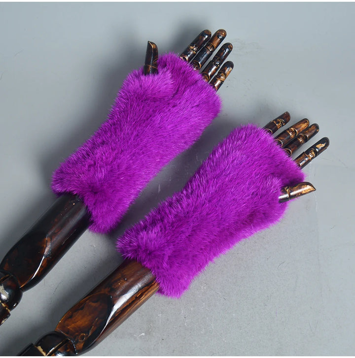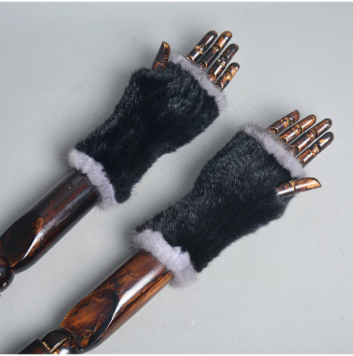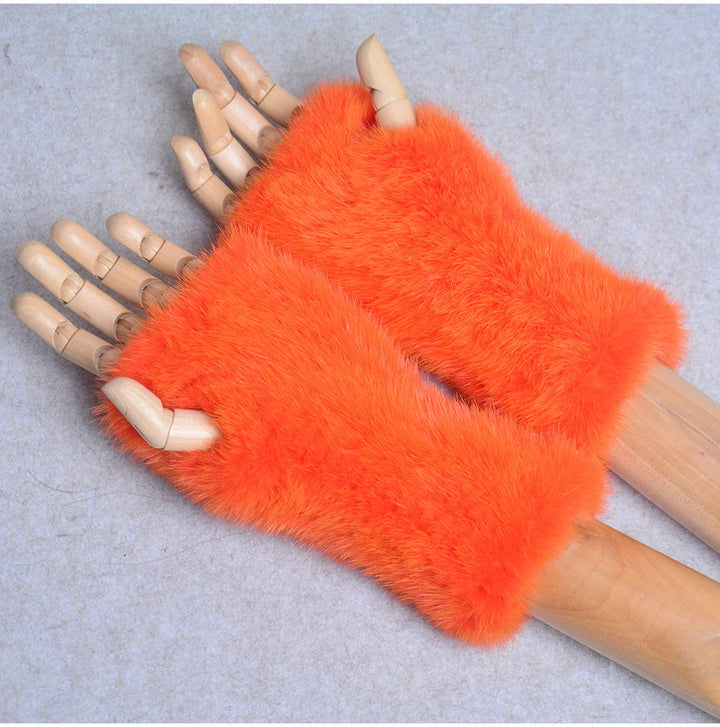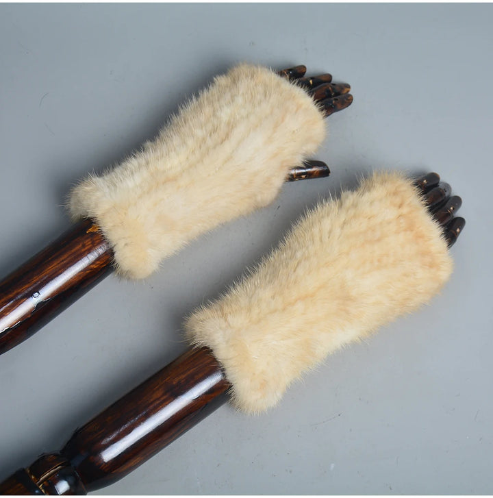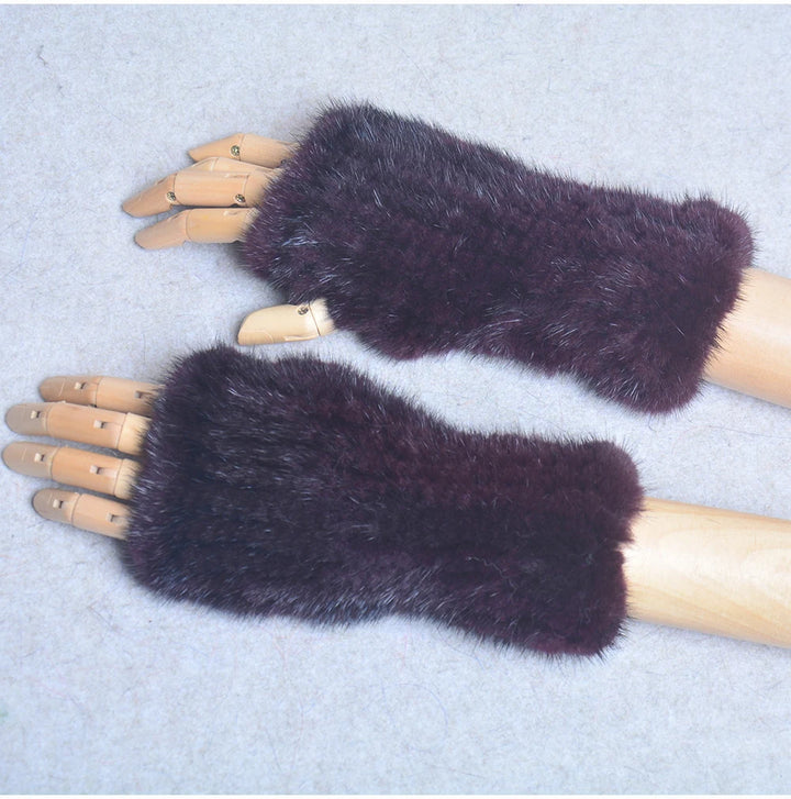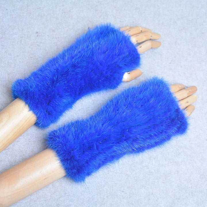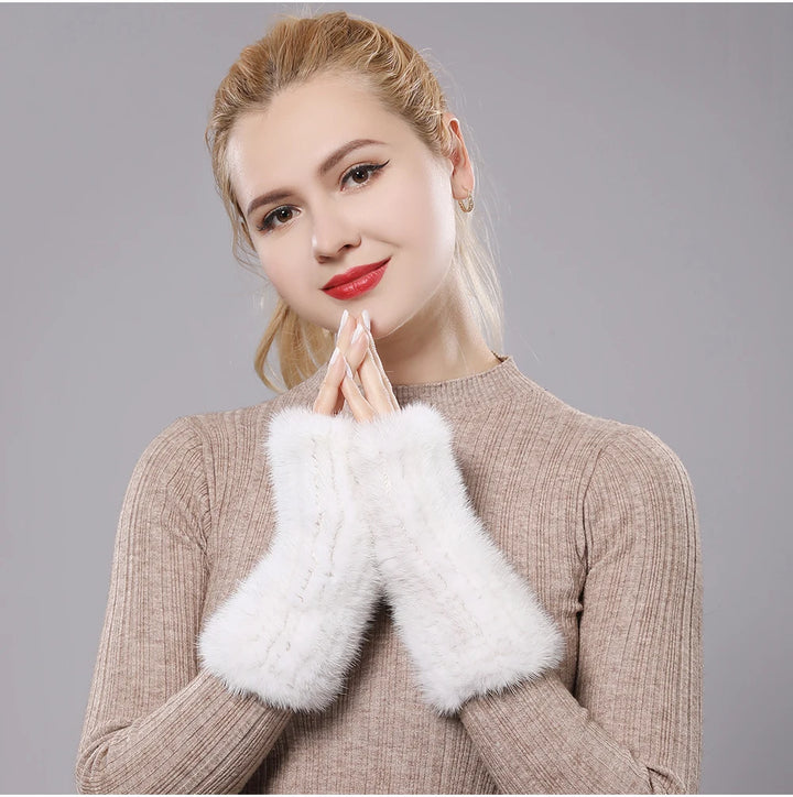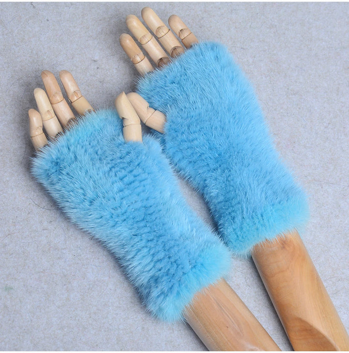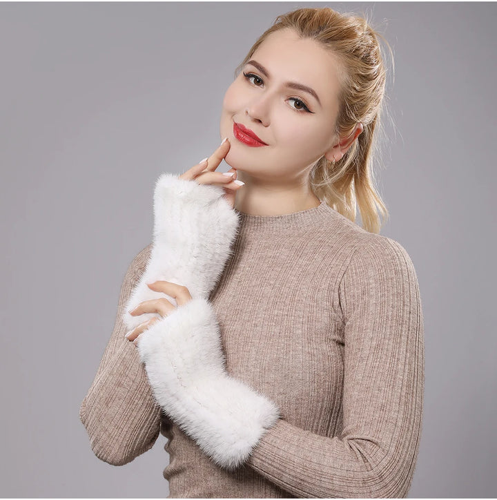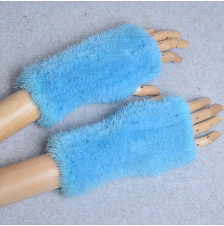New Women 100% Real Genuine Knitted Mink Fur Mittens Winter Warm Lady Real Fur Fingerless Gloves Handmade Knit Mink Fur Mitten