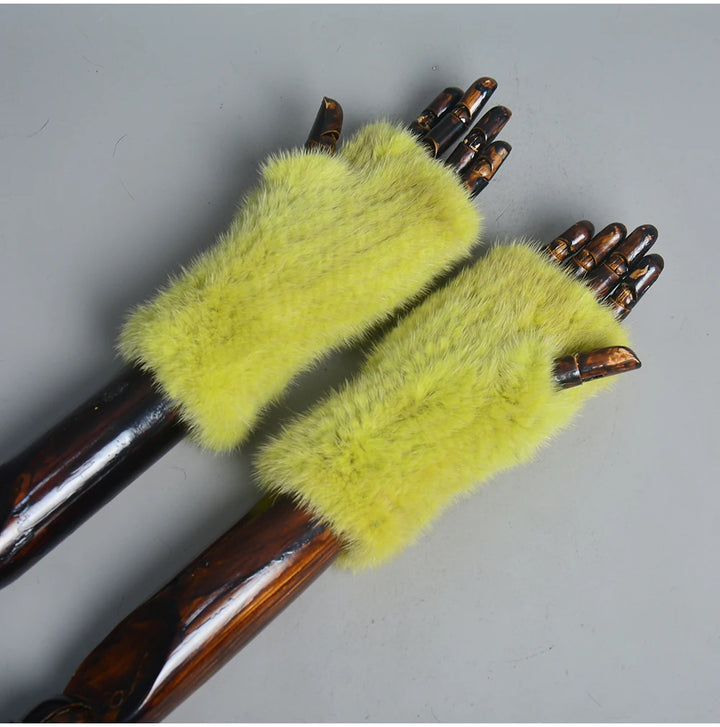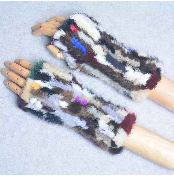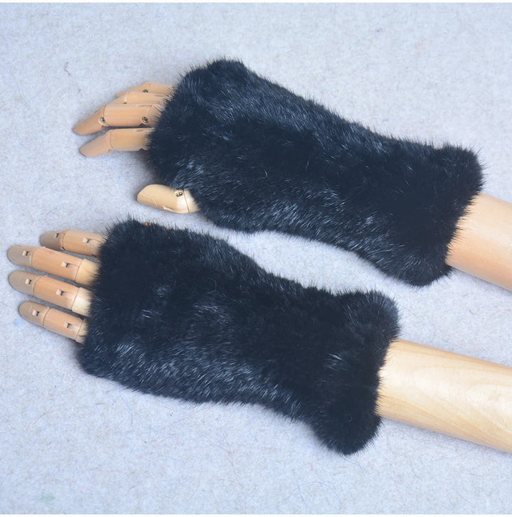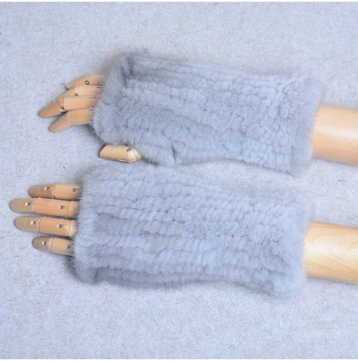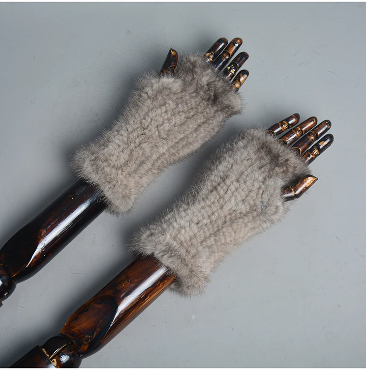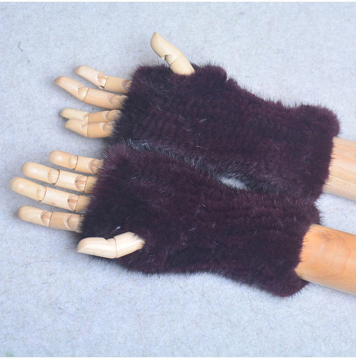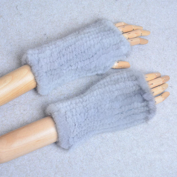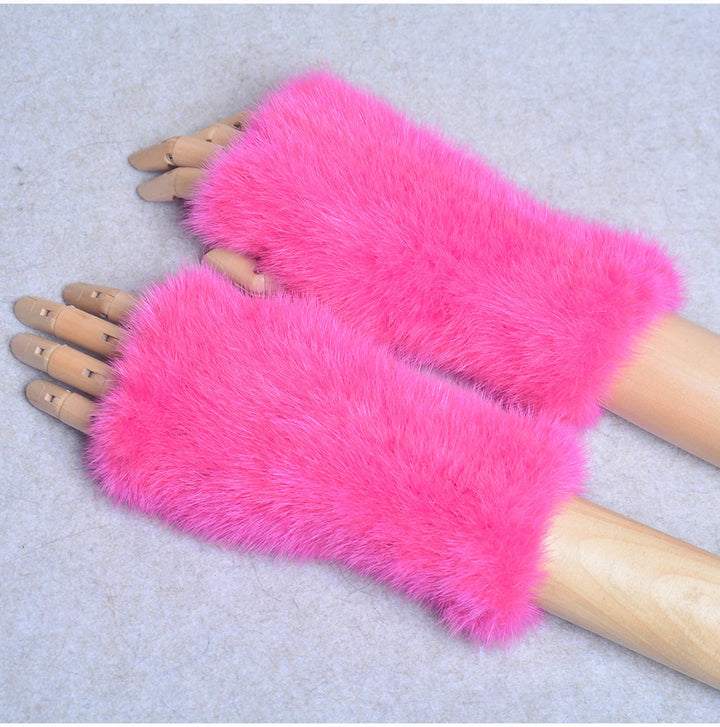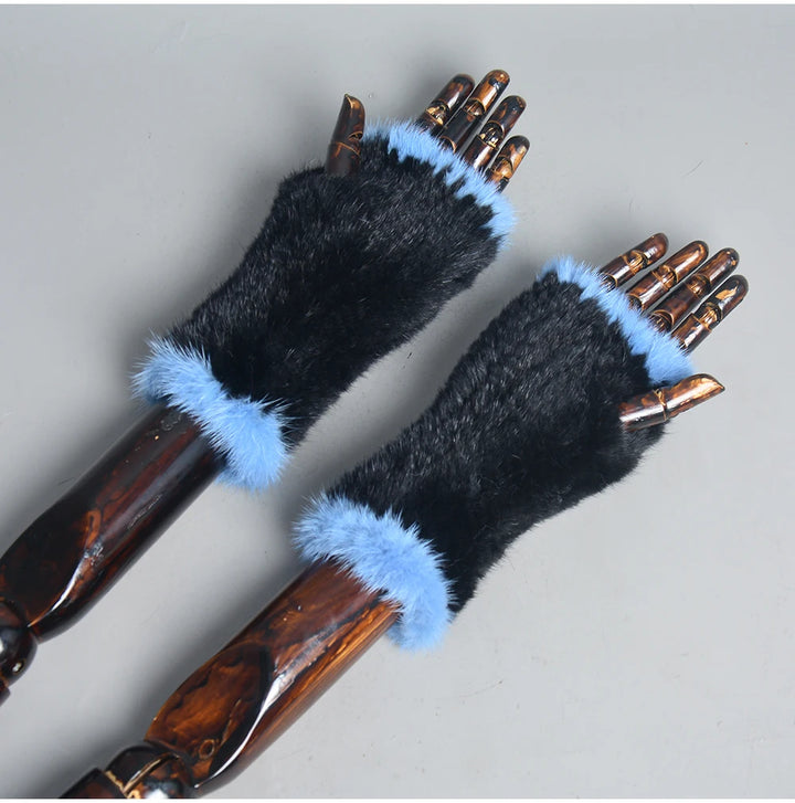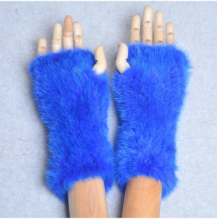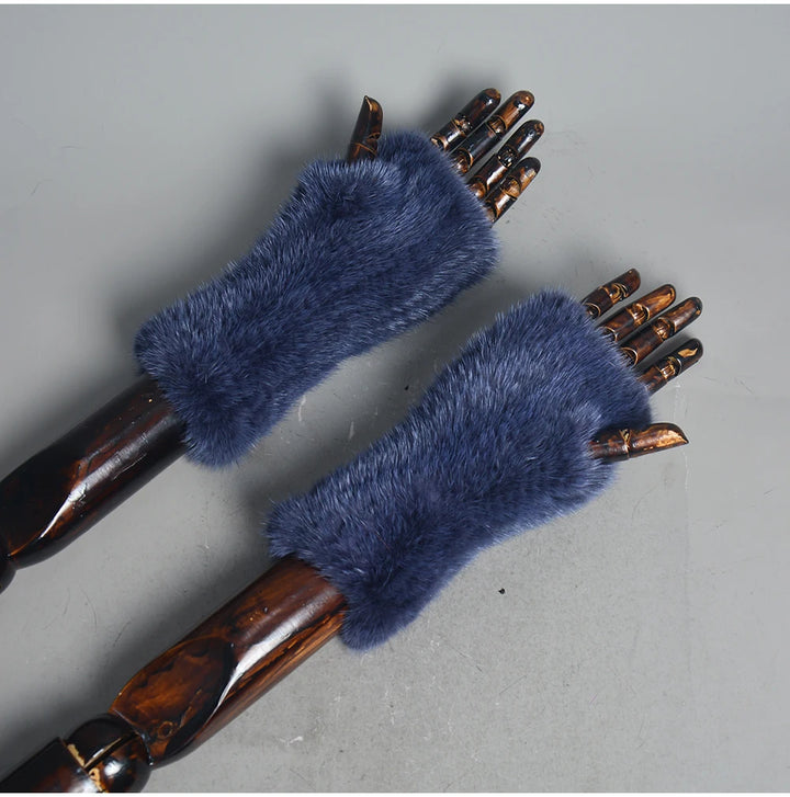 New Women 100% Real Genuine Knitted Mink Fur Mittens Winter Warm Lady Real Fur Fingerless Gloves Handmade Knit Mink Fur Mitten