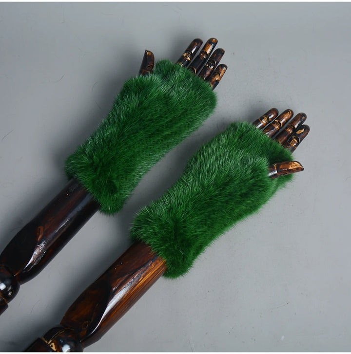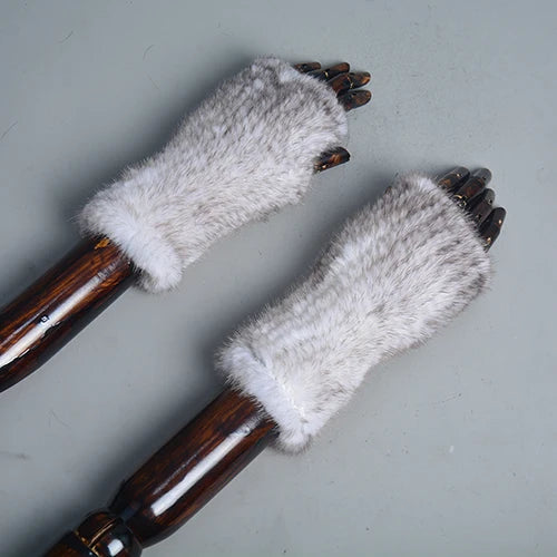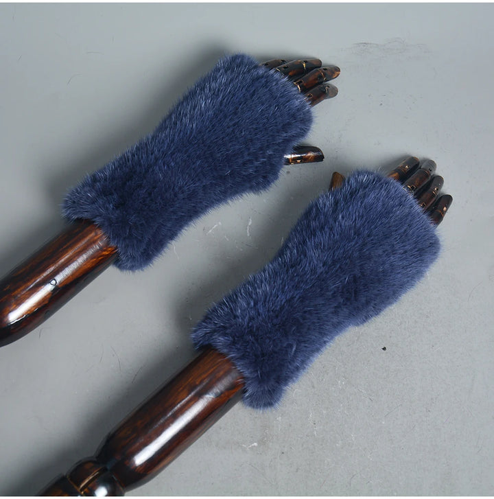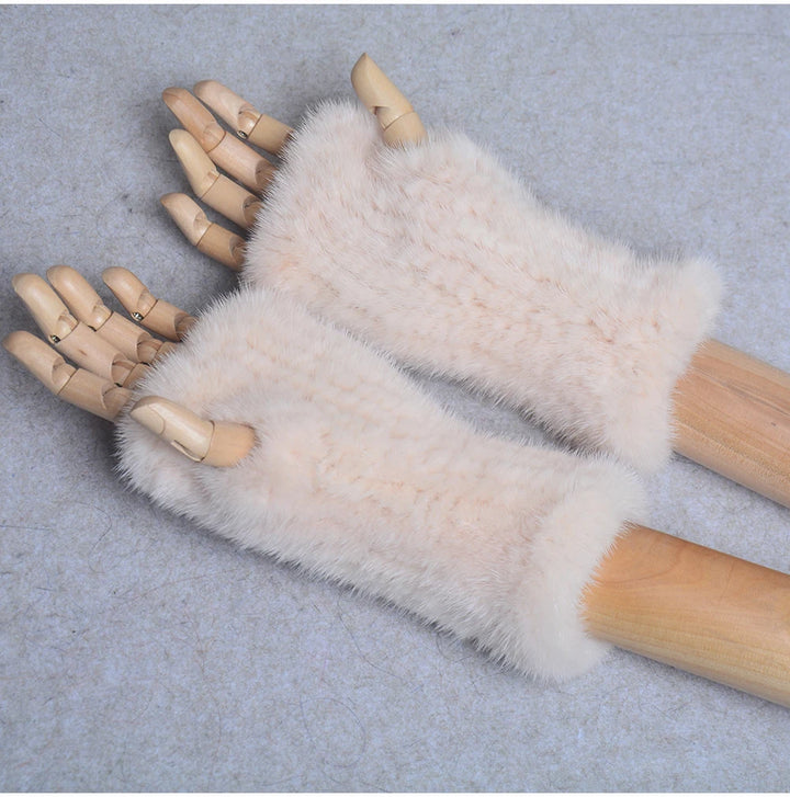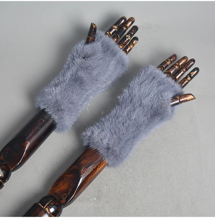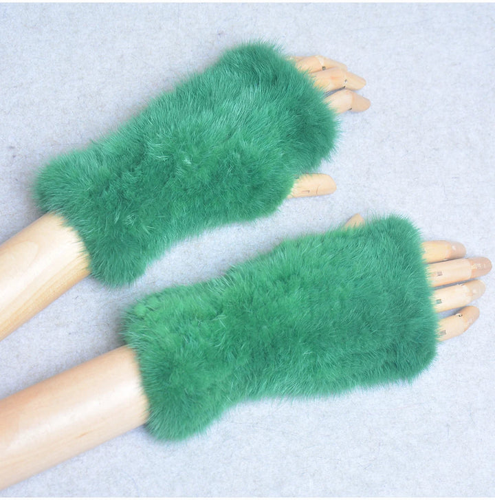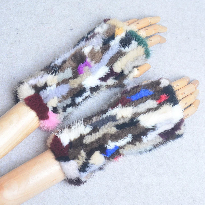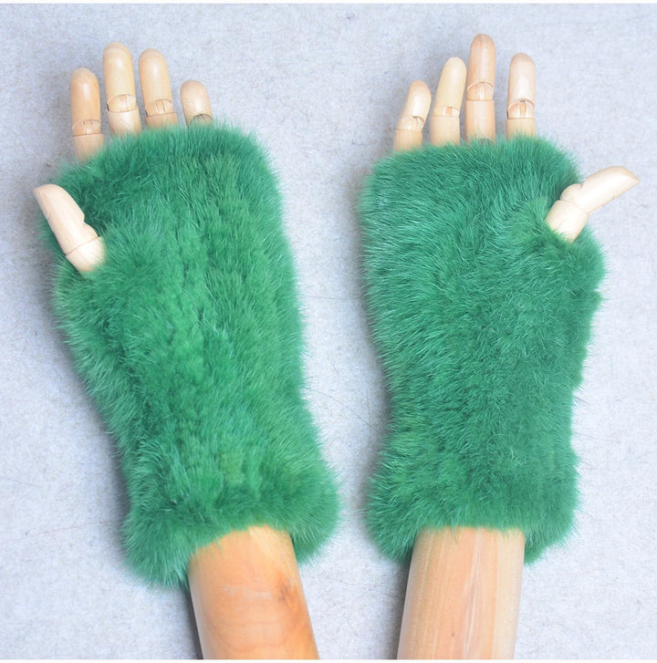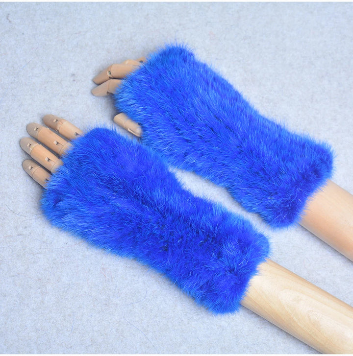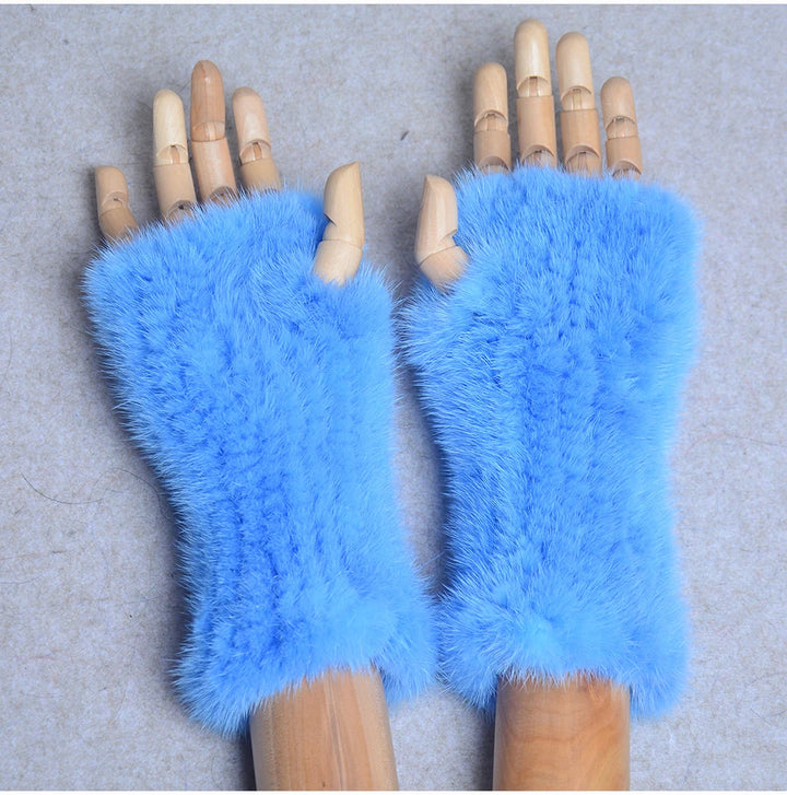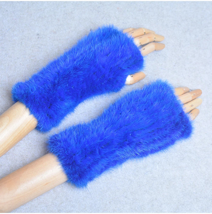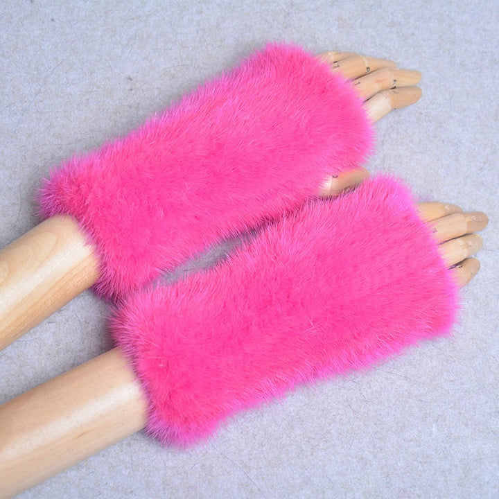 New Women 100% Real Genuine Knitted Mink Fur Mittens Winter Warm Lady Real Fur Fingerless Gloves Handmade Knit Mink Fur Mitten