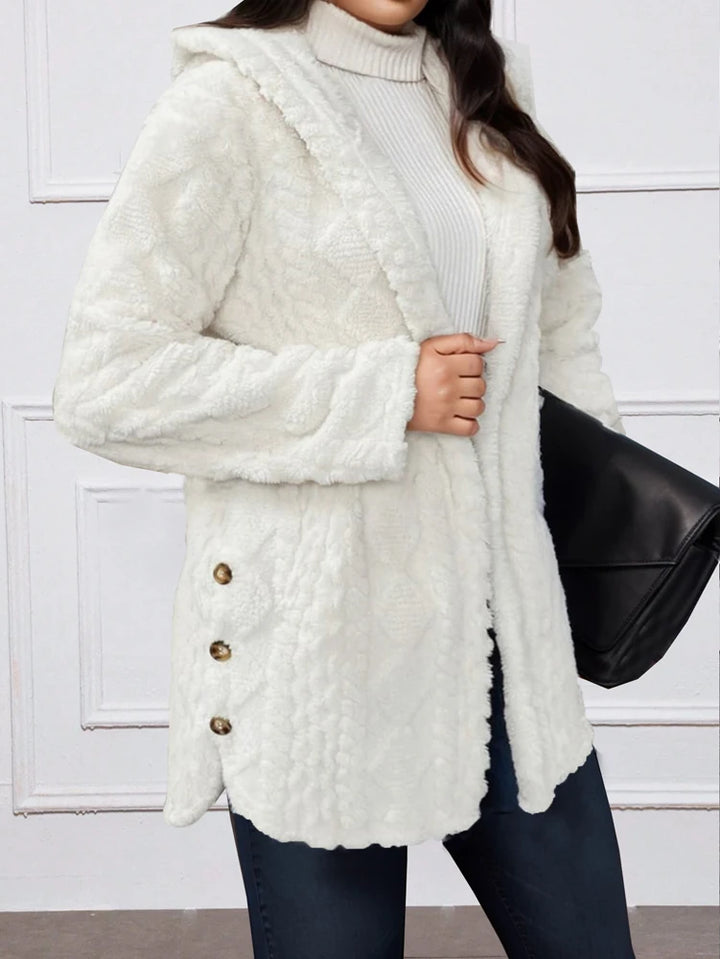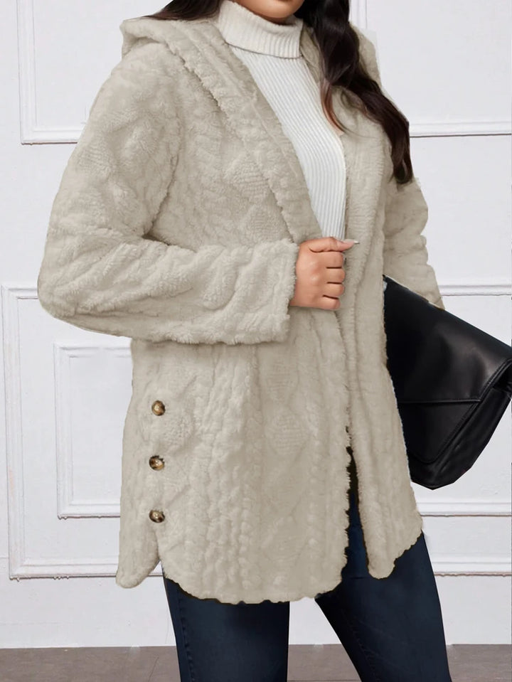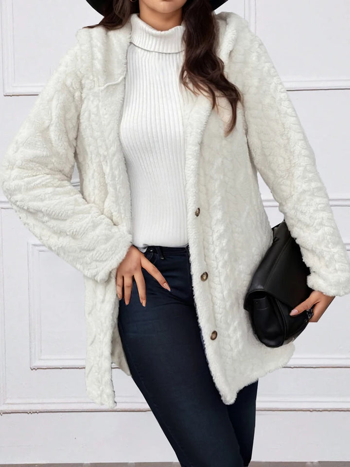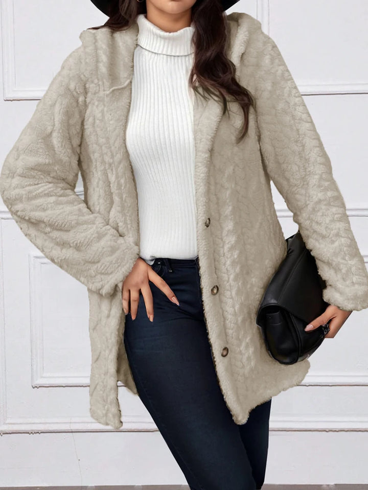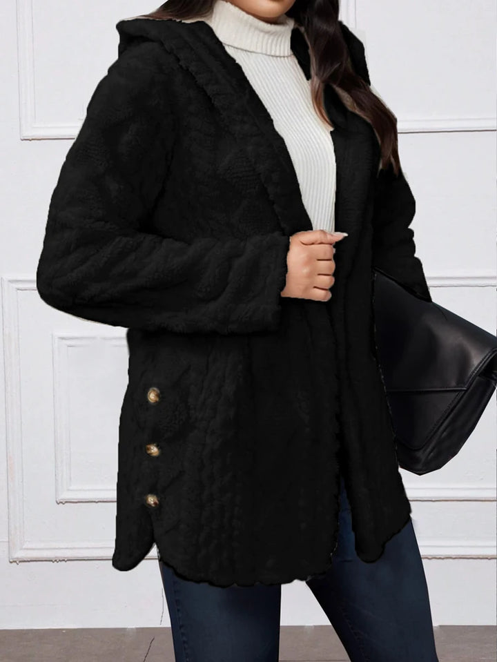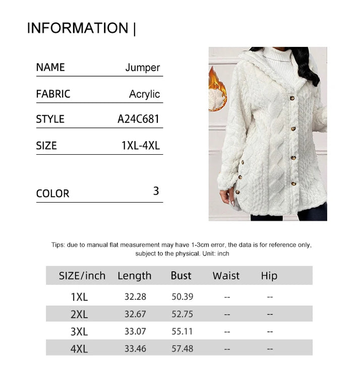 Plus Size Autumn and Winter Faux Fur Coat Plush Button Cardigan Hooded Sweater Pure Colour Autumn and Winter Warmth