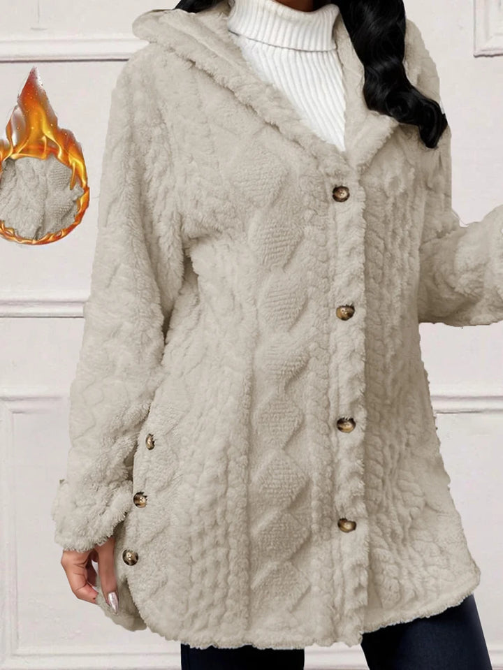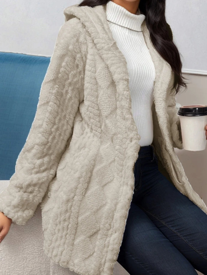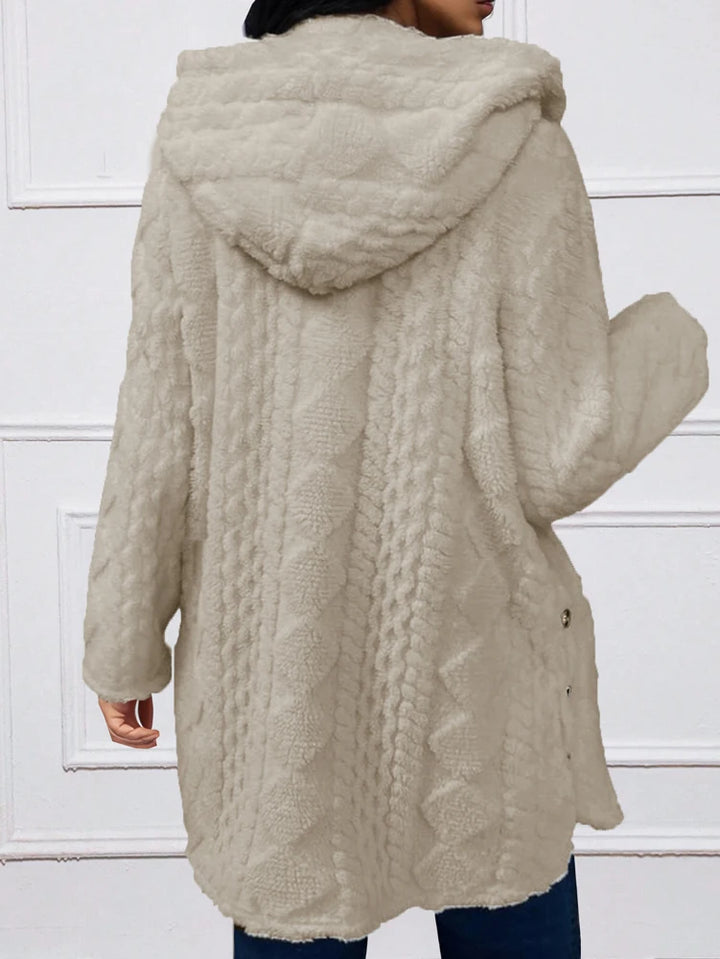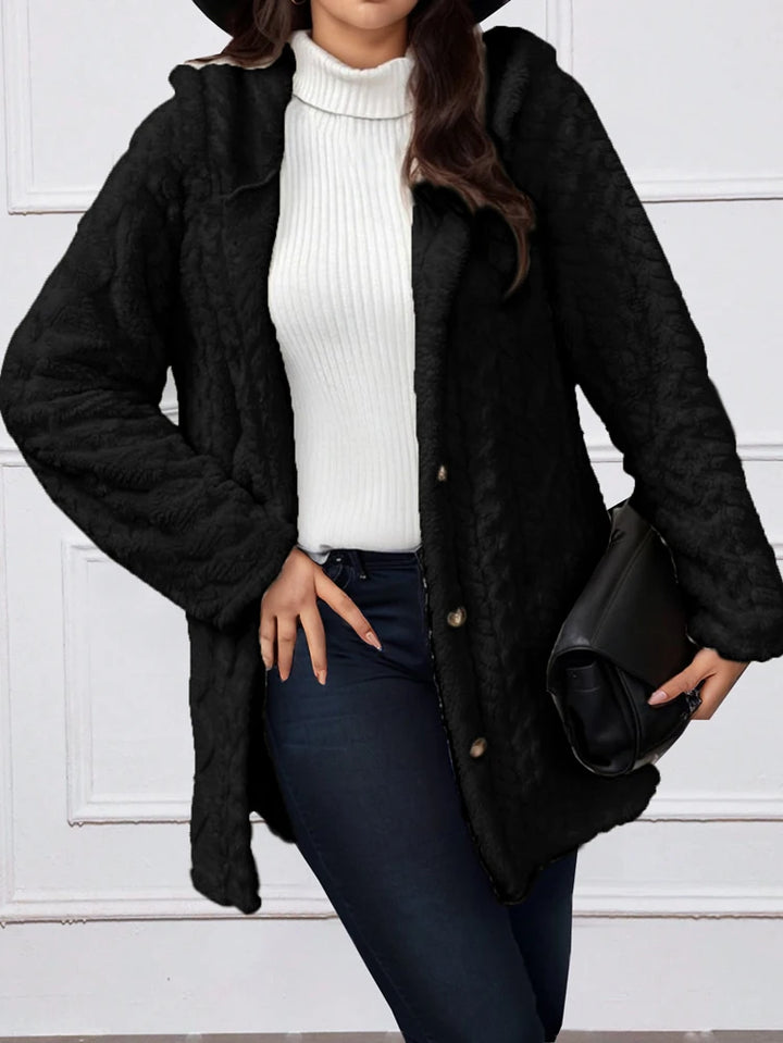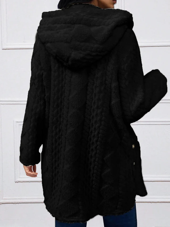 Plus Size Autumn and Winter Faux Fur Coat Plush Button Cardigan Hooded Sweater Pure Colour Autumn and Winter Warmth