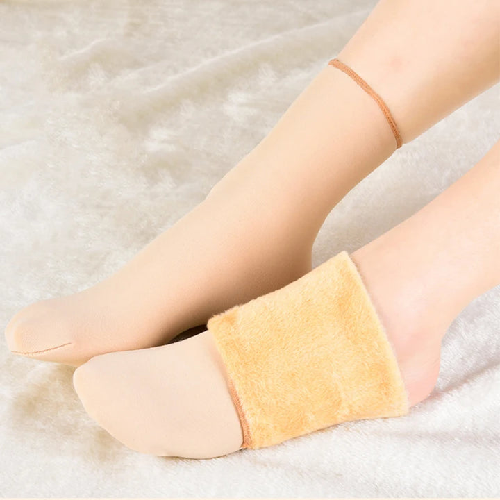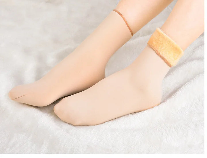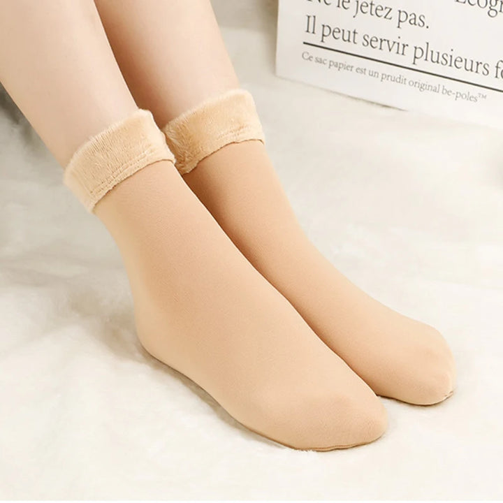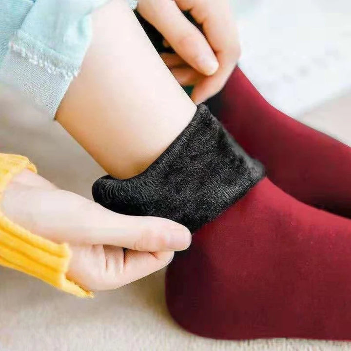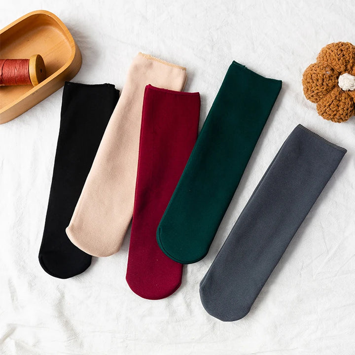 Socks women's Winter Warm Thickened Velvet Solid Color Soft Casual Wool Cashmere Against Cold Snow Socks