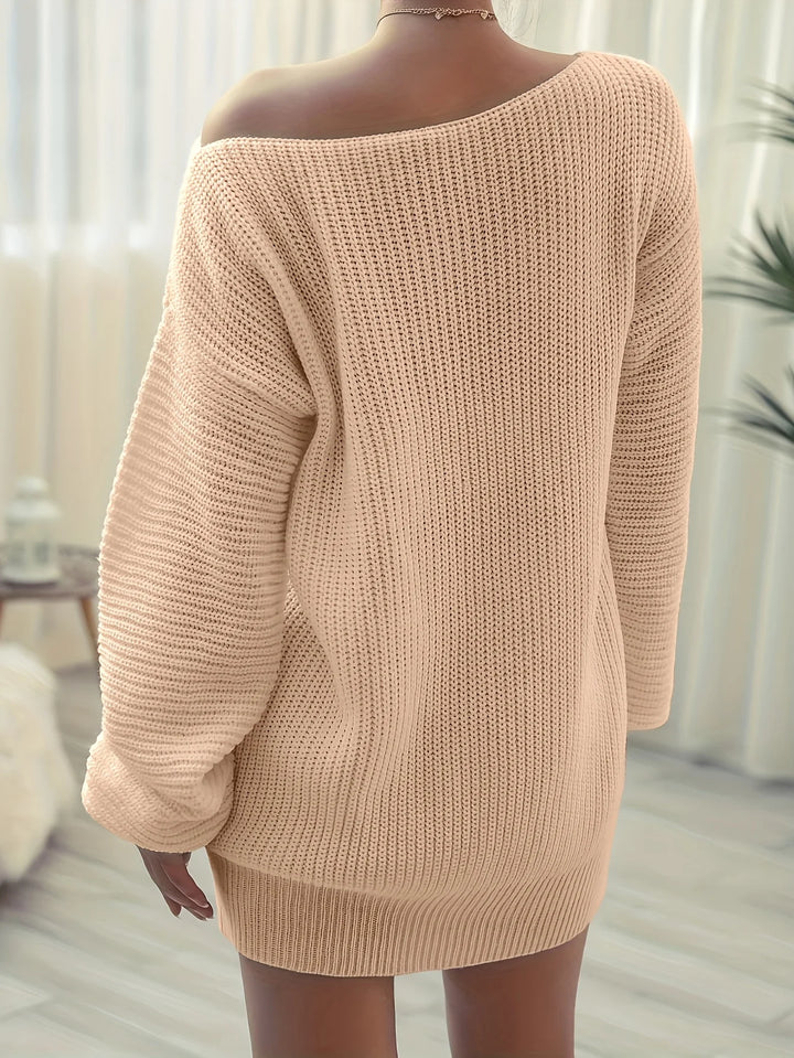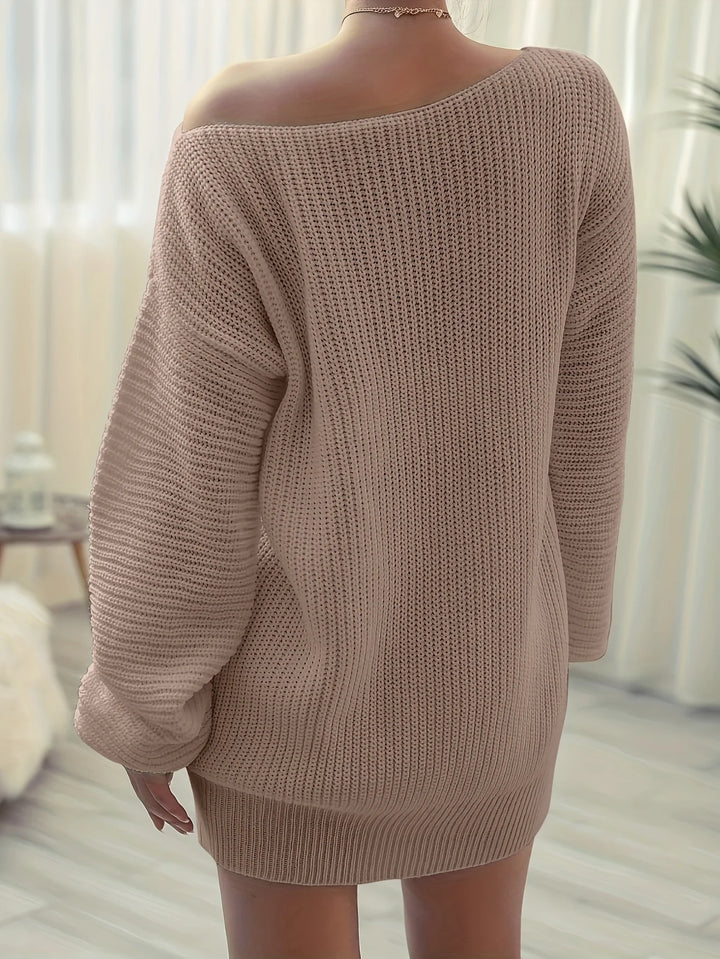 Solid Off Shoulder Knitted Dress Casual Long Sleeve Sweater Dress For Fall & Winter Women's Clothing