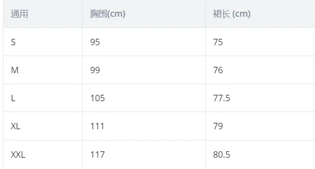 size_info: {"sizeInfoList":[{"length":{"cm":"95","inch":"37.40"},"size":"S","vid":-1},{"length":{"cm":"99","inch":"38.98"},"size":"M","vid":-2},{"length":{"cm":"105","inch":"41.34"},"size":"L","vid":-3},{"length":{"cm":"111","inch":"43.70"},"size":"XL","vid":-4},{"length":{"cm":"117","inch":"46.06"},"size":"XXL","vid":-5}]}
