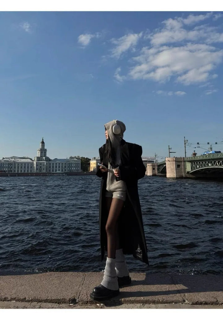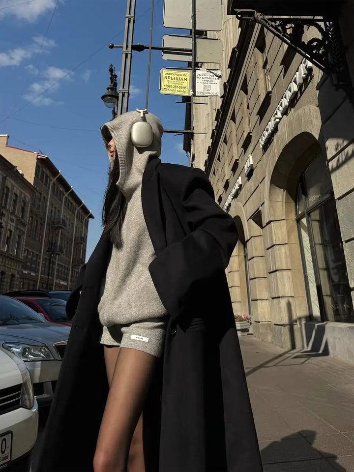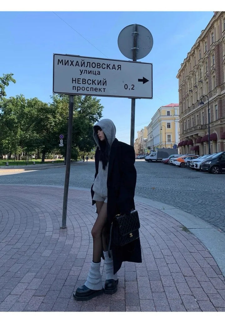 Sweater Set Women American Vintage Hooded Long Sleeve Cardigan Straight Shorts Grey Two Piece Outfit Fall Winter Streetwear Set