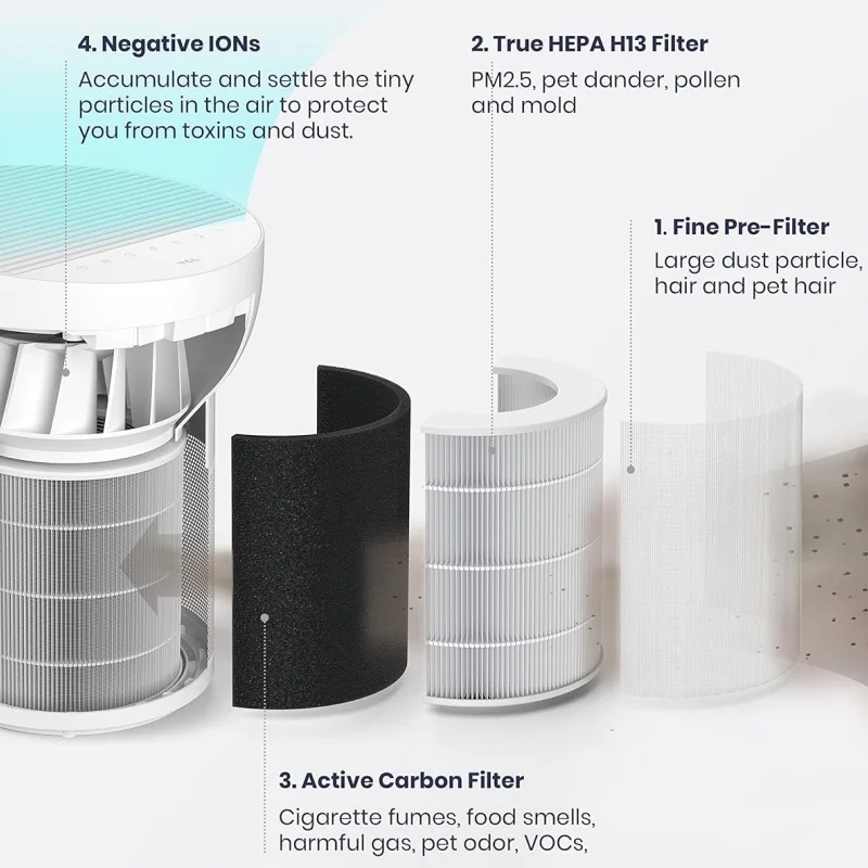 TCL Breeva A2 Smart Air Purifier with 4-Stage Clean, True HEPA (H13), Quiet