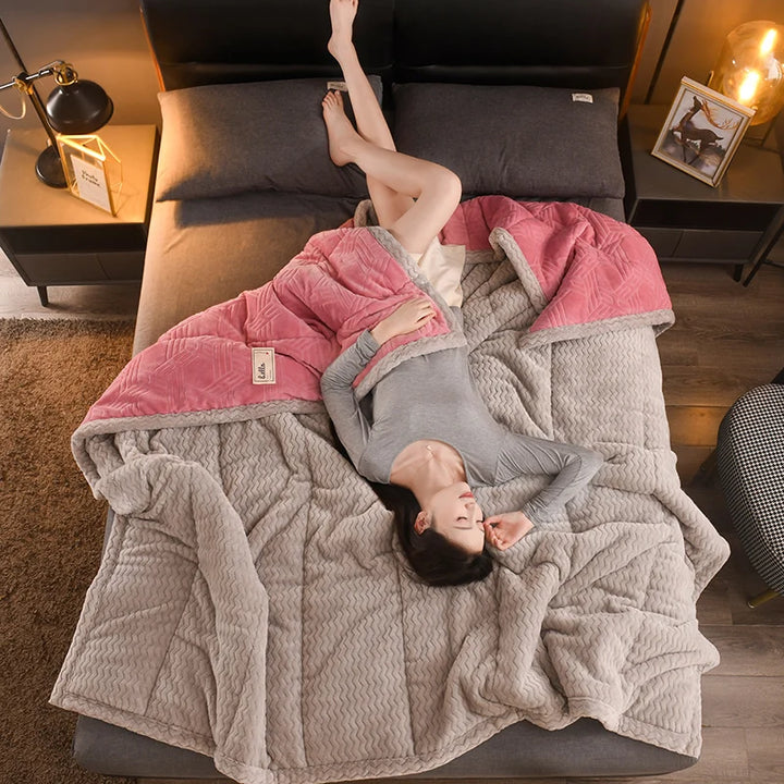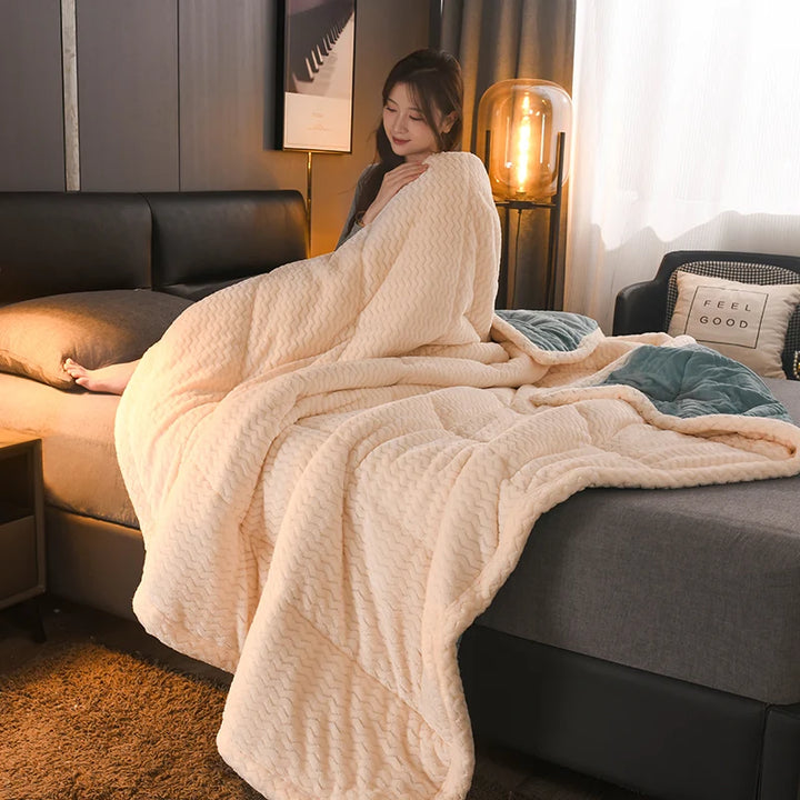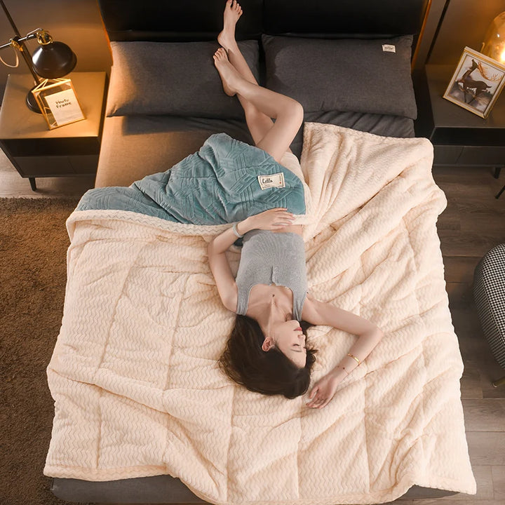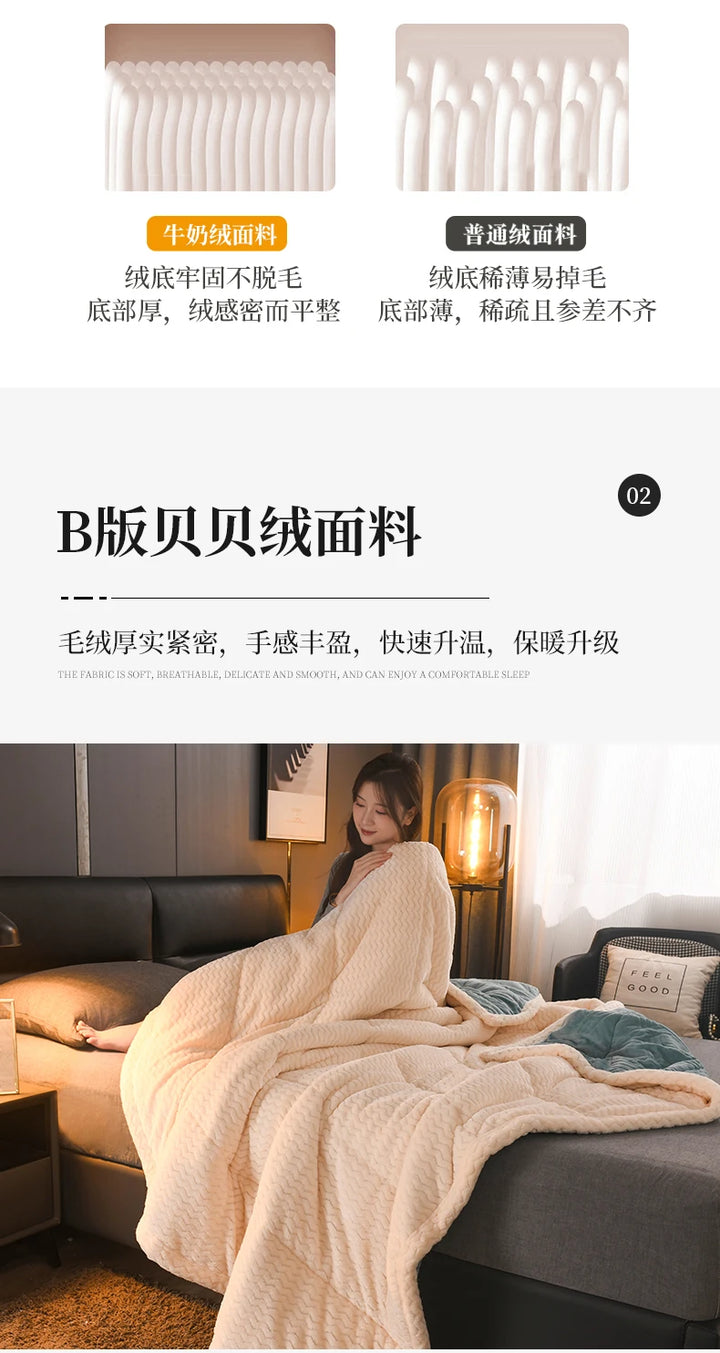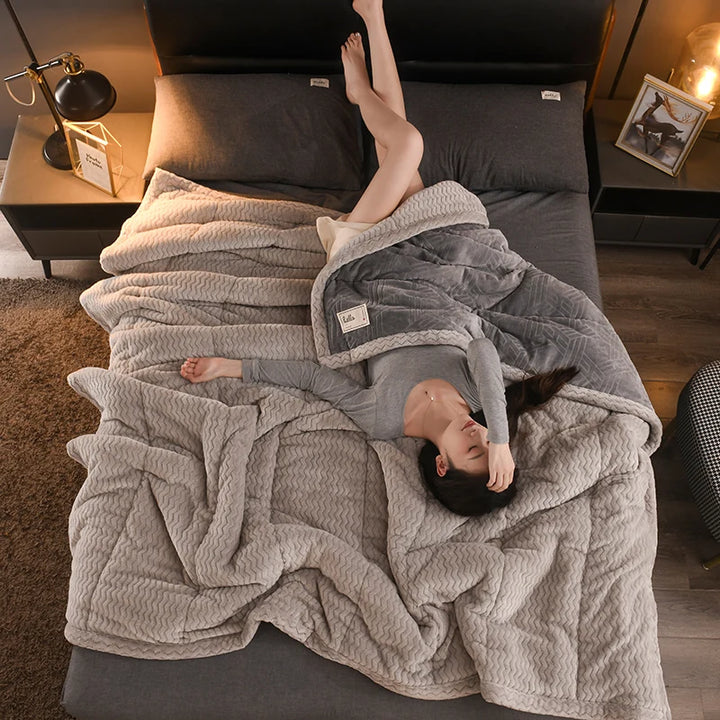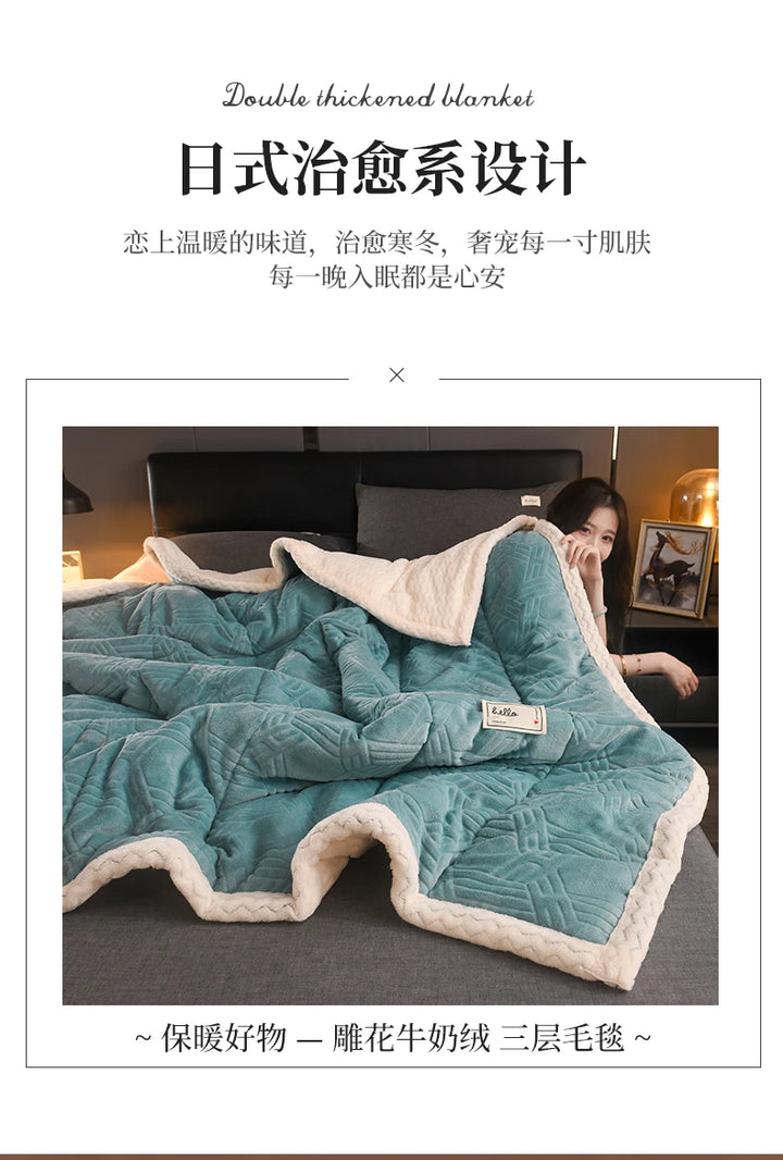 Thick Milk Velvet Warm Blanket for Winter King Size Fleece Sherpa Comforter Cozy Soft Plush Weighted Blanket for Bed Sofa Throws