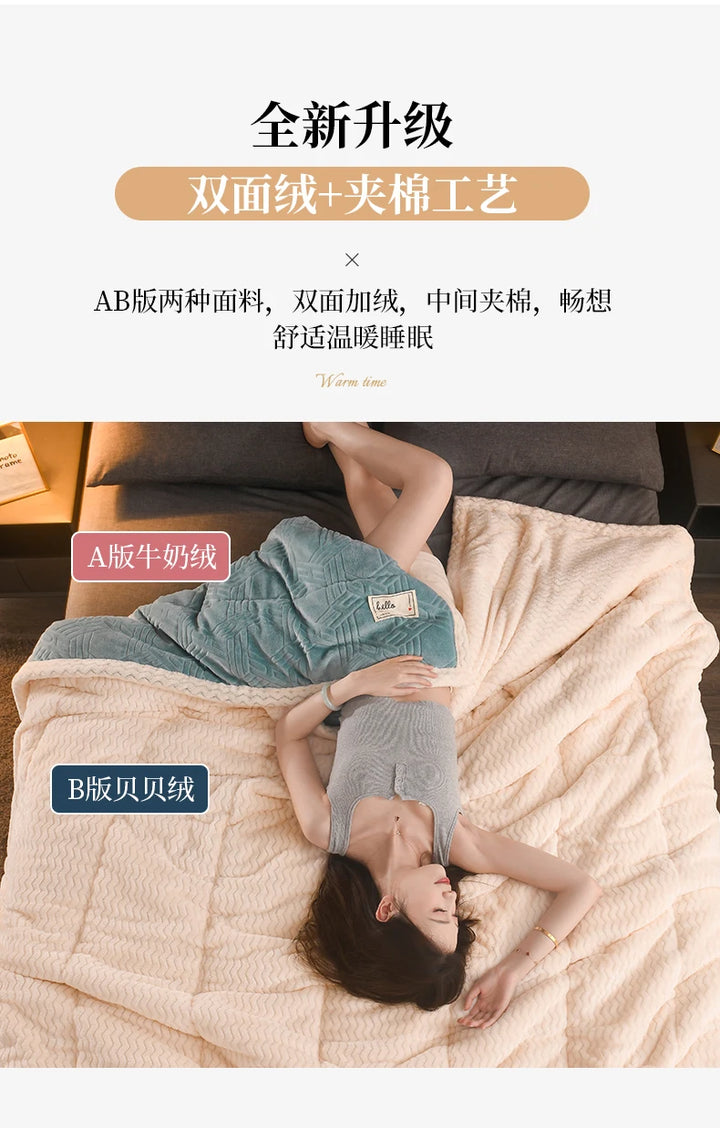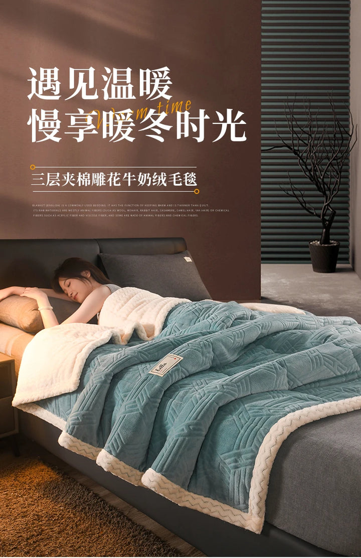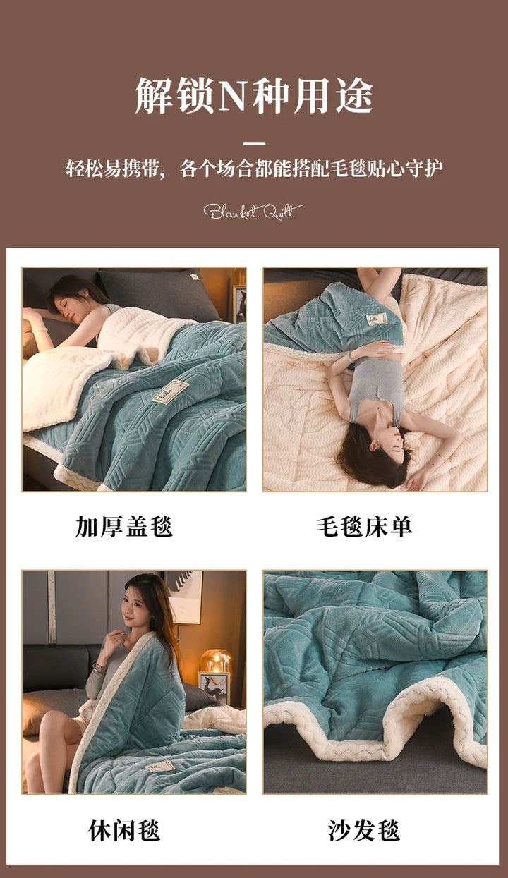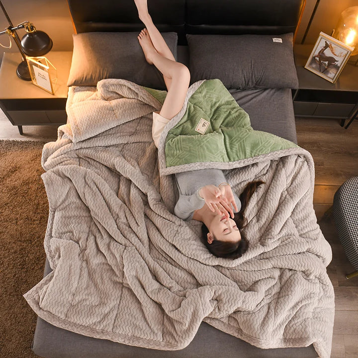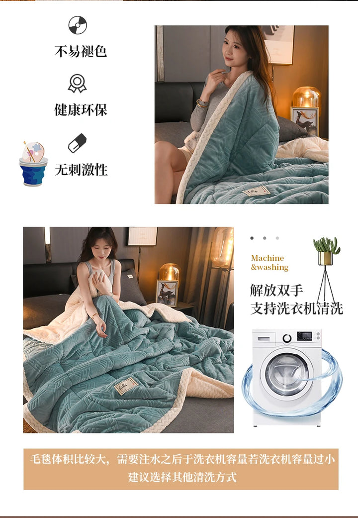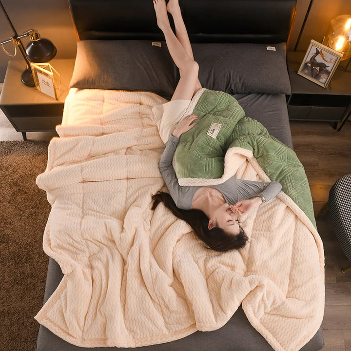 Thick Milk Velvet Warm Blanket for Winter King Size Fleece Sherpa Comforter Cozy Soft Plush Weighted Blanket for Bed Sofa Throws