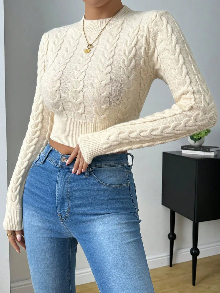 winter khaki high-waist pullover short twisted rope sweater for short people with belly-baring fashion simple knitted base shirt