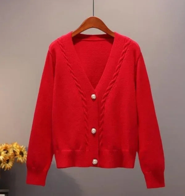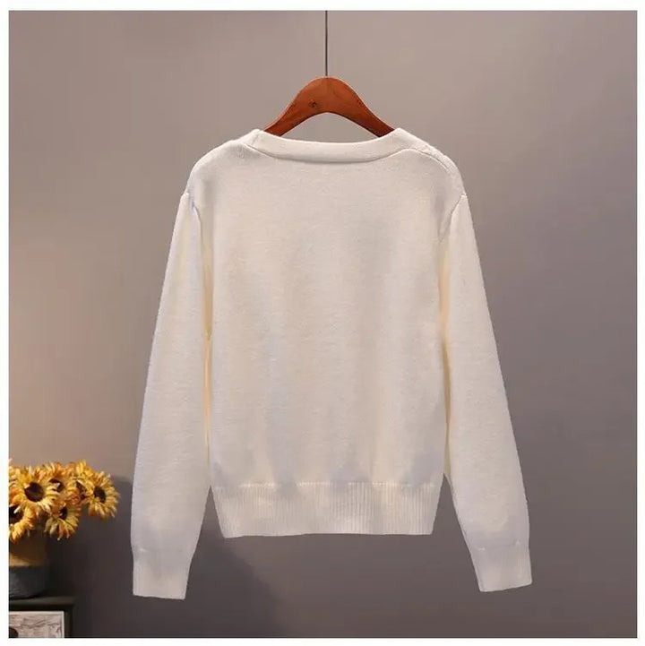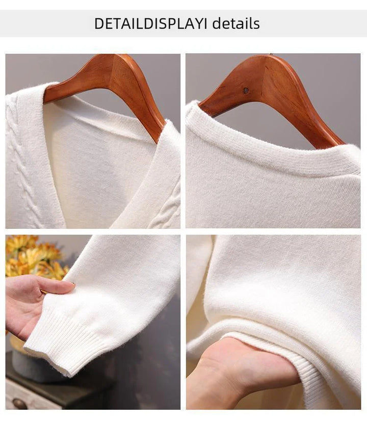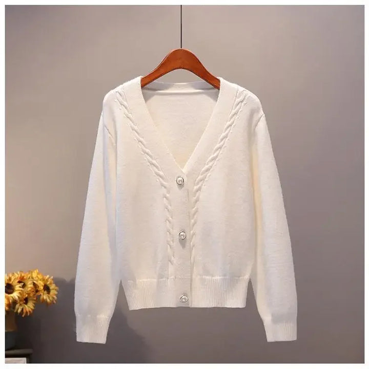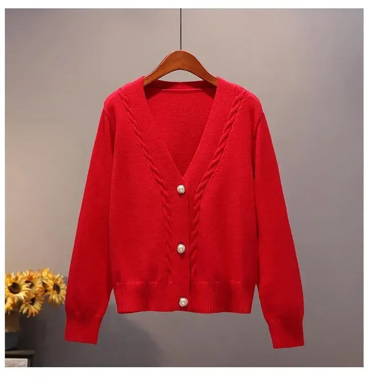 Winter Knitted Sweater V-neck Loose-fit Versatile Short Cropped Jacket Women's Cardigan Knit Top