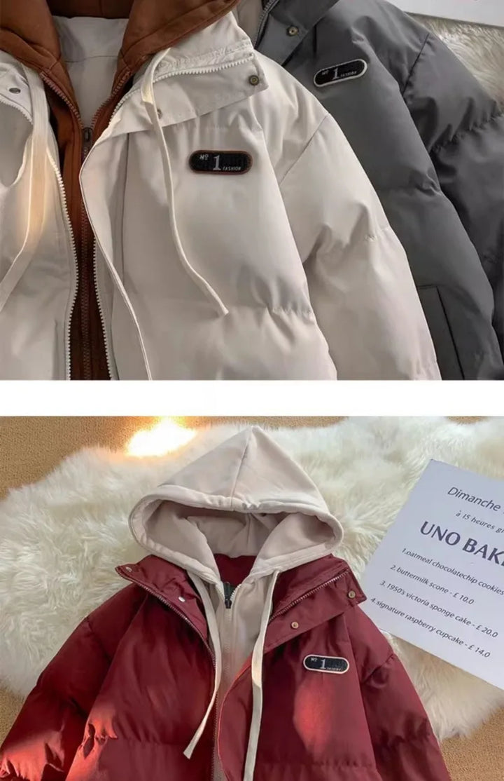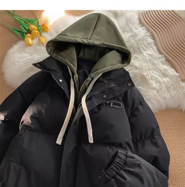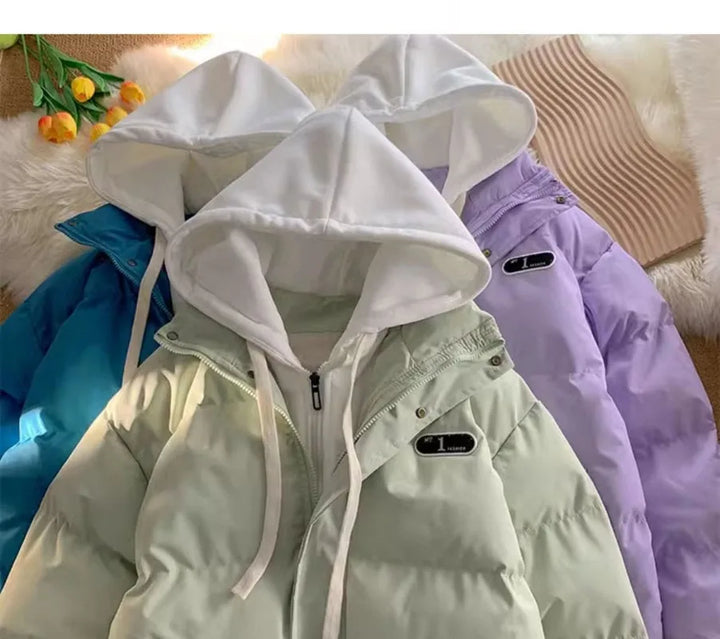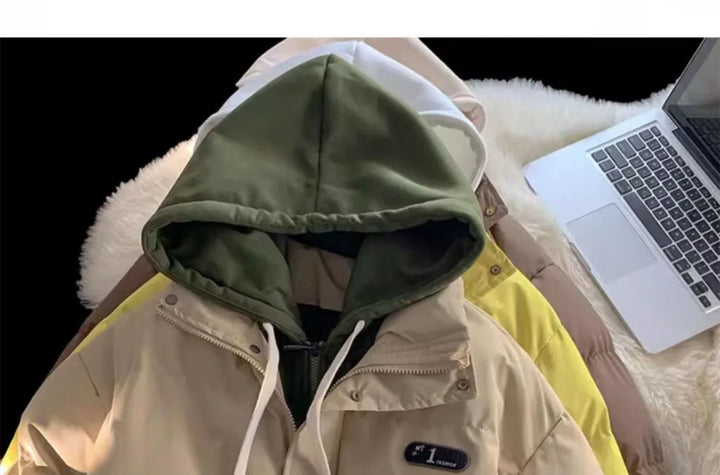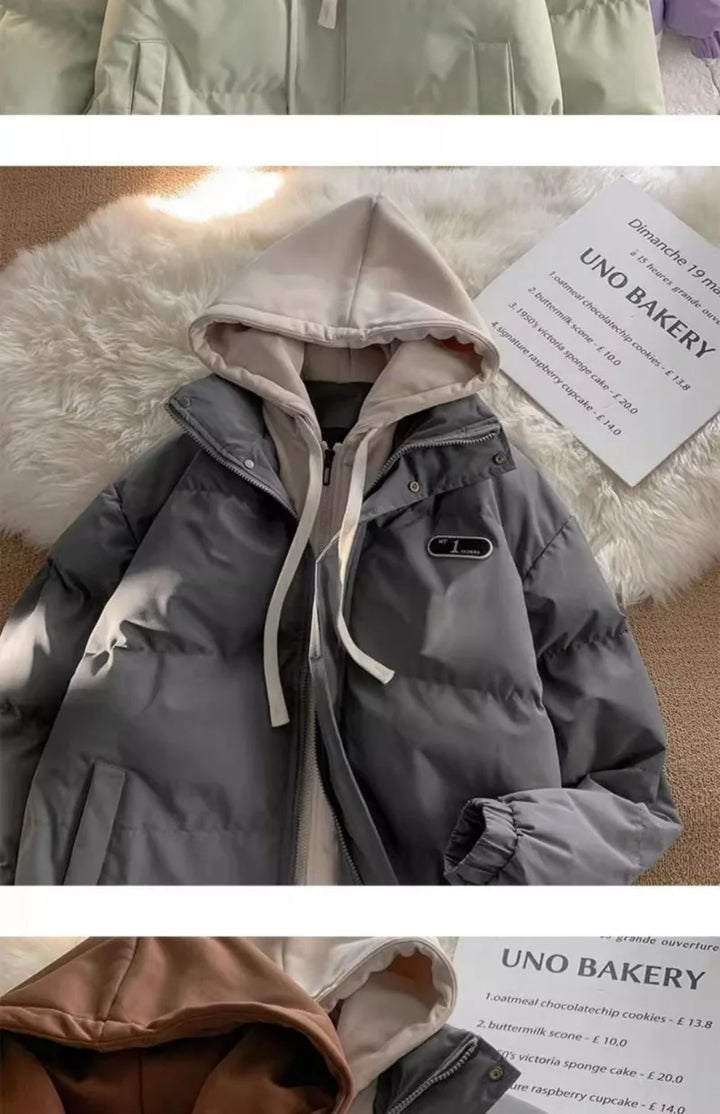 Winter New Fashion Splicing Hooded Fake Two-piece Design Sense Bread Clothes Women Y2K New Korean Version Thick Warm Coats