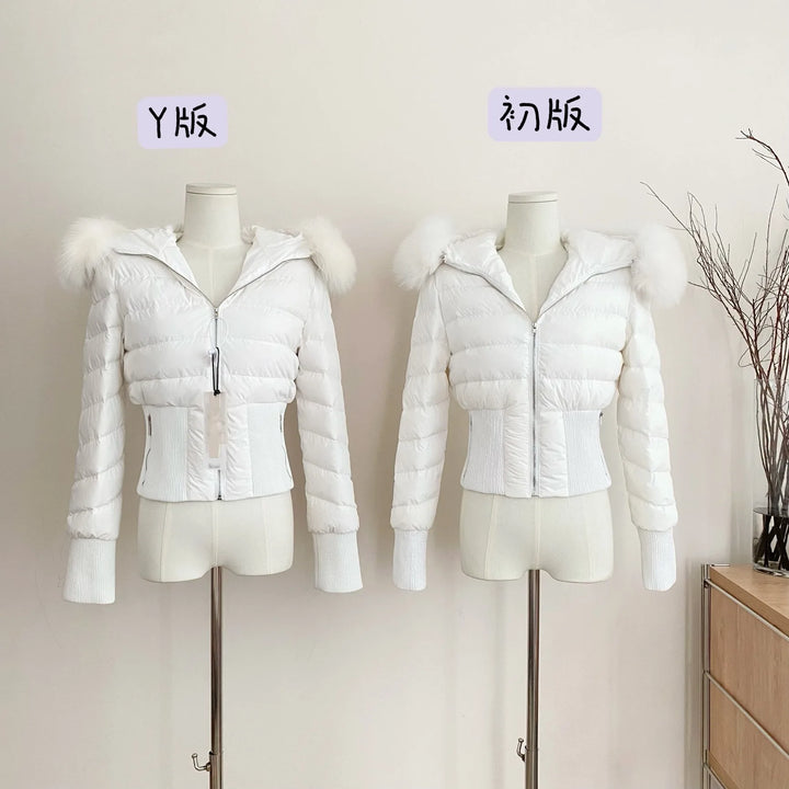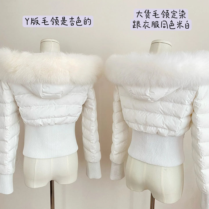 Winter Real Fox Fur Women White Goose Down 2000s Short Jacket Warm Puffer Female Outdoor Thick Cropped Y2k Fashion Parkas 2024