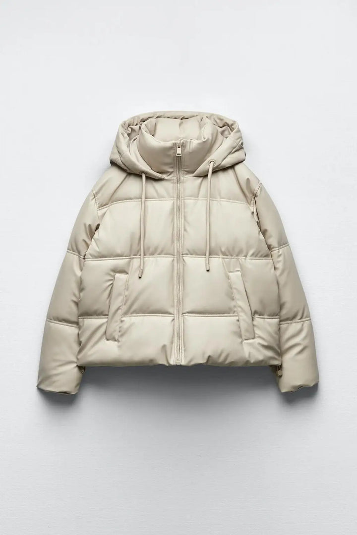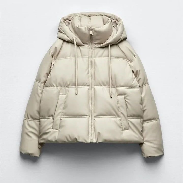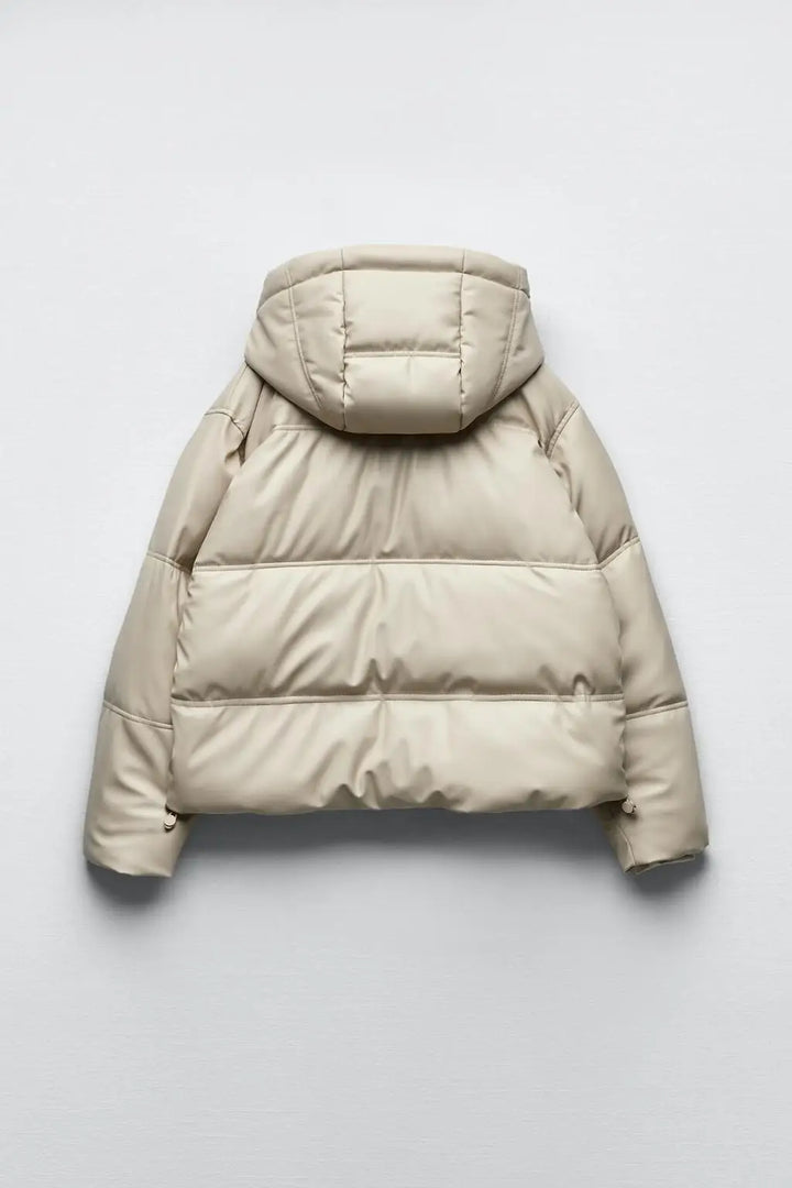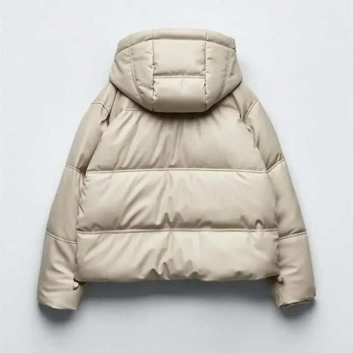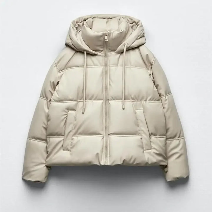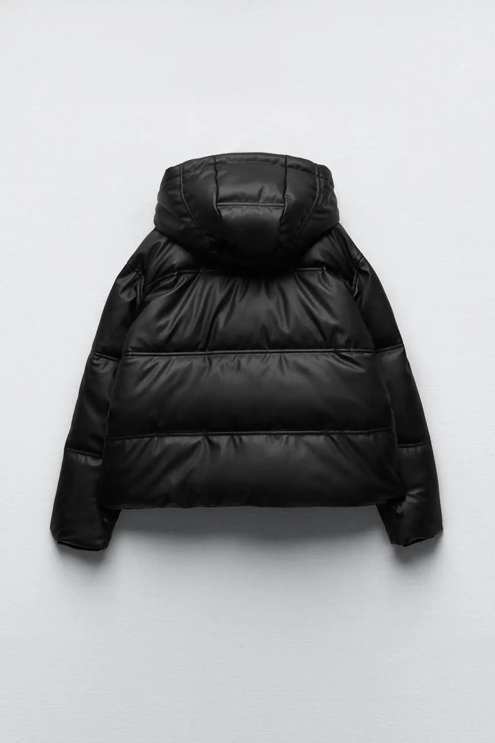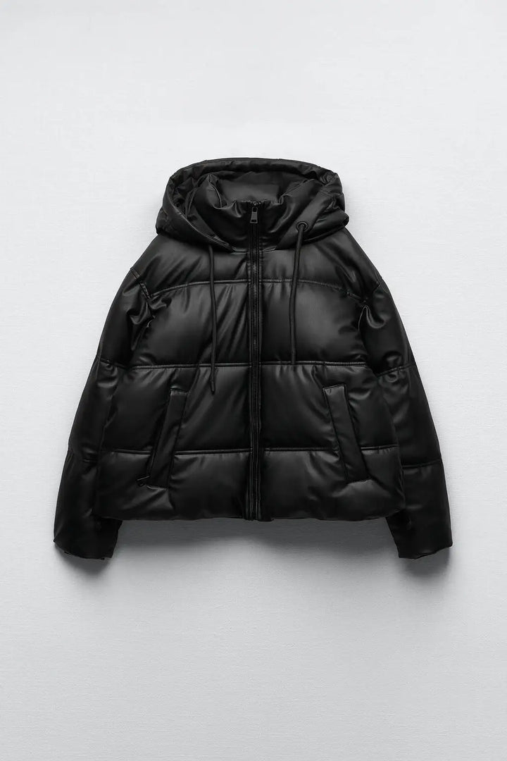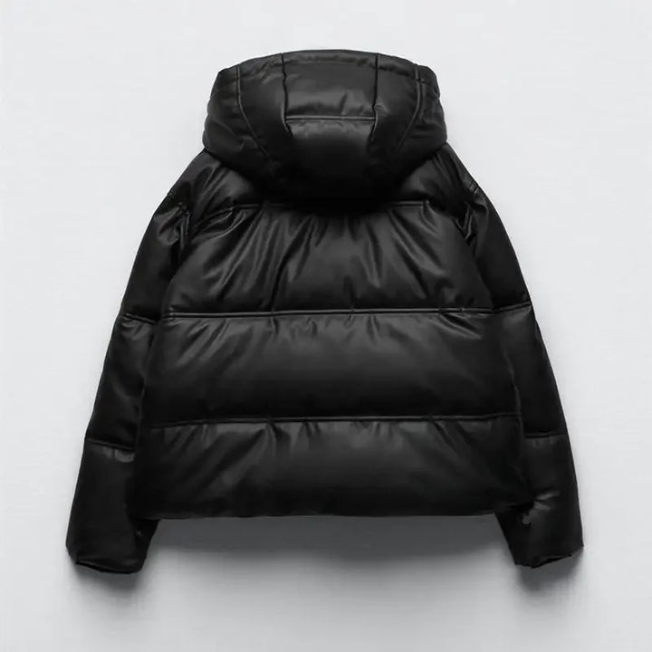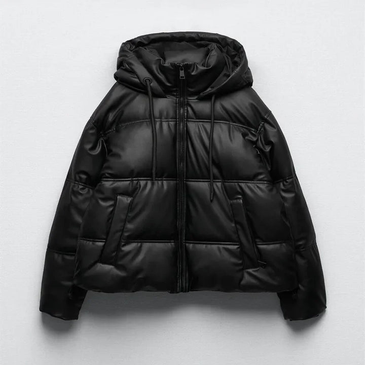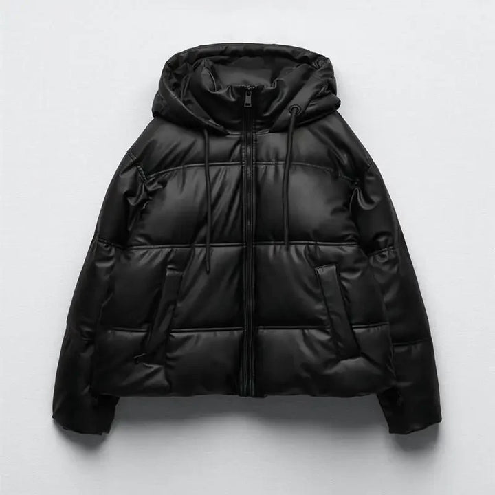 Winter Women Faux Leather Puffer Jacket 2024 Warm PU Snow Hooded Parka Female Casual Loose Coat Zipper Long Sleeve Overcoat