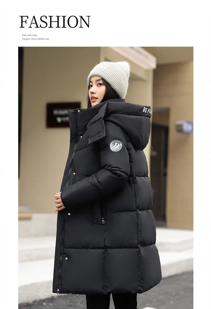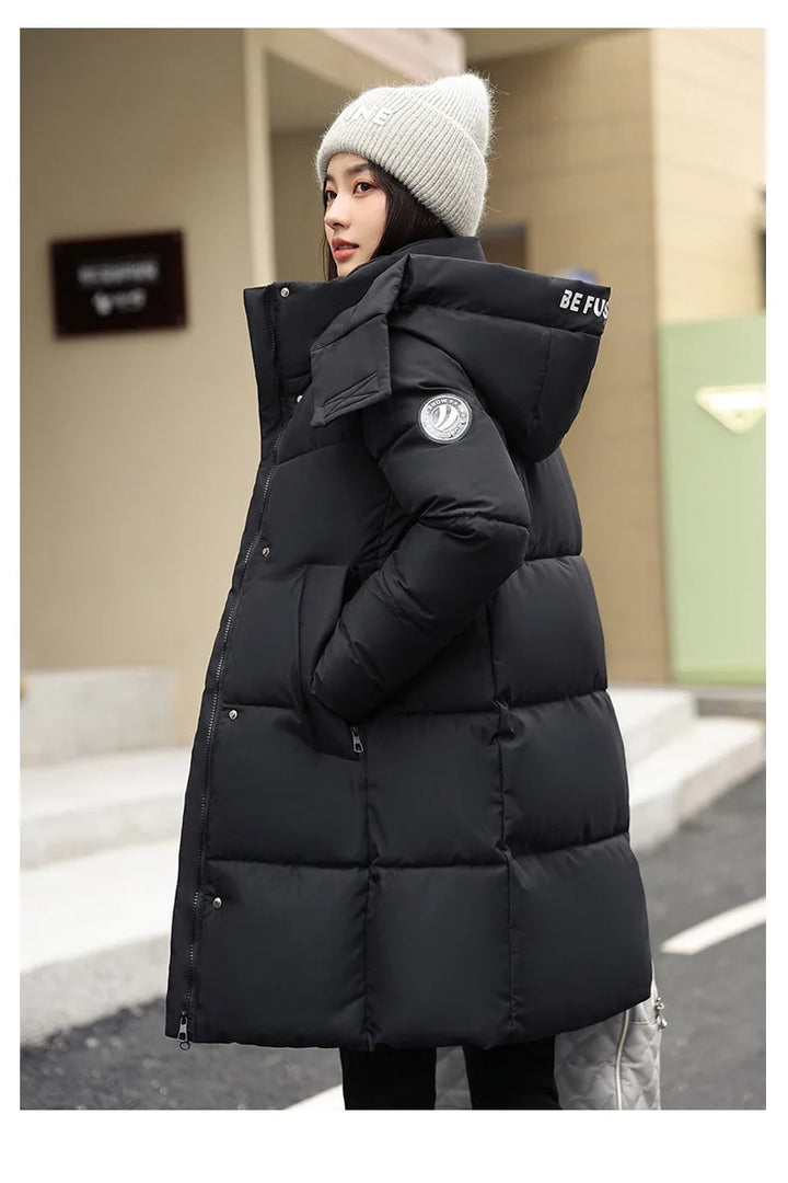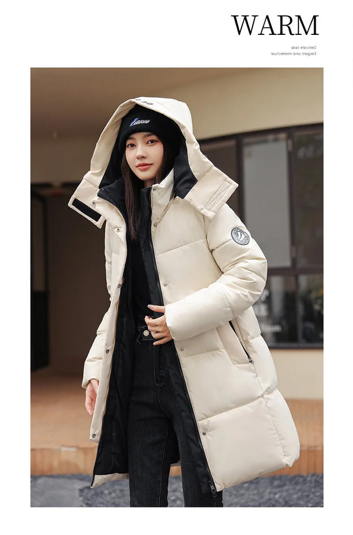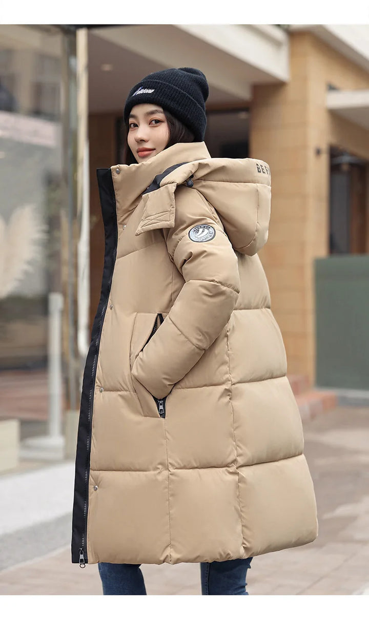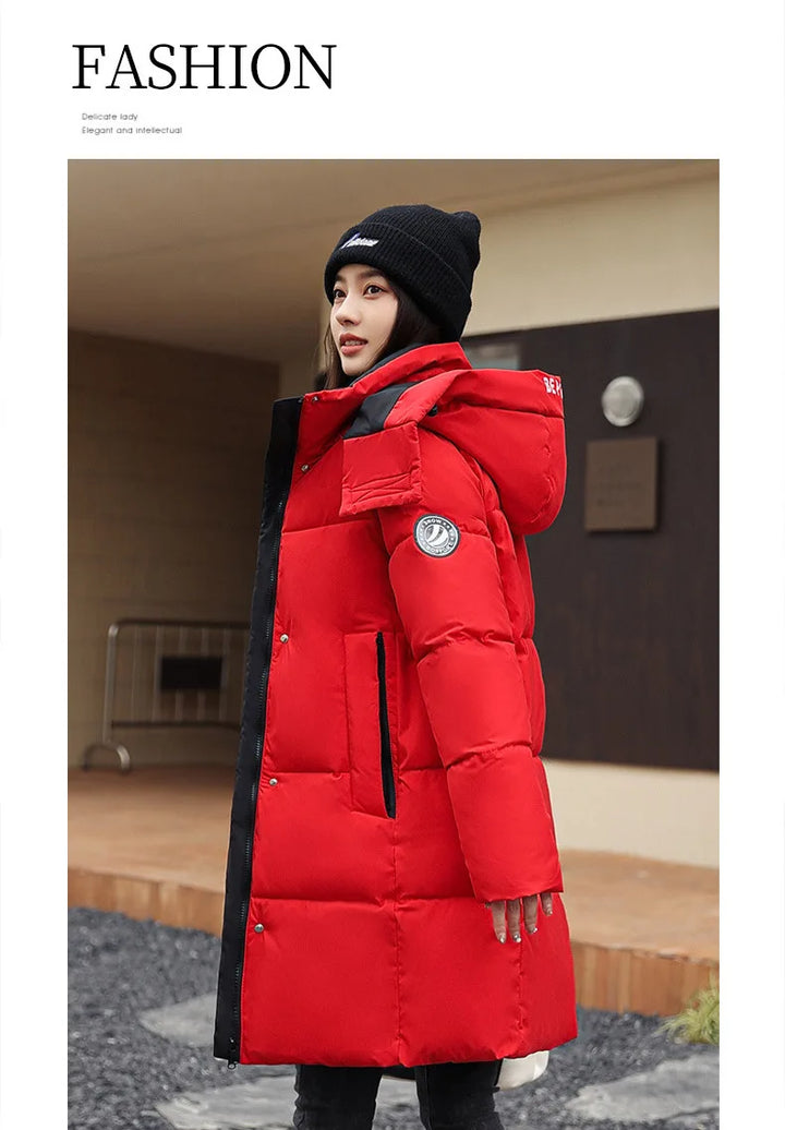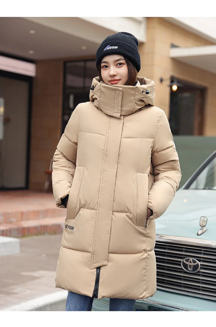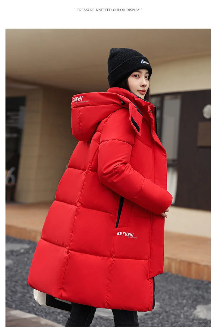 Winter Women's Padded Jacket Solid Zipper Fly Hooded Pockets Heavyweight Lady's Padded Coat Long Over-the-knee Coat For Female