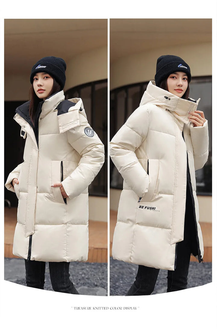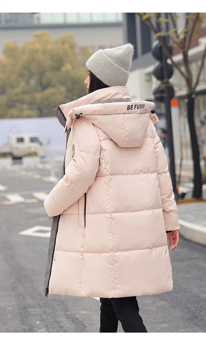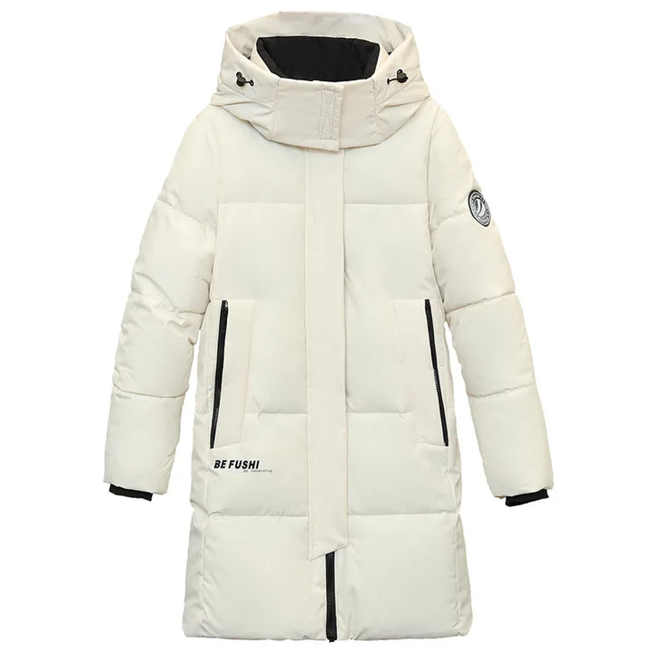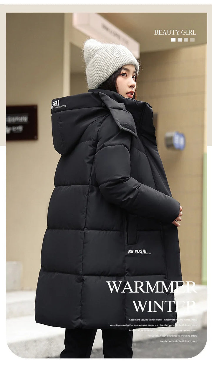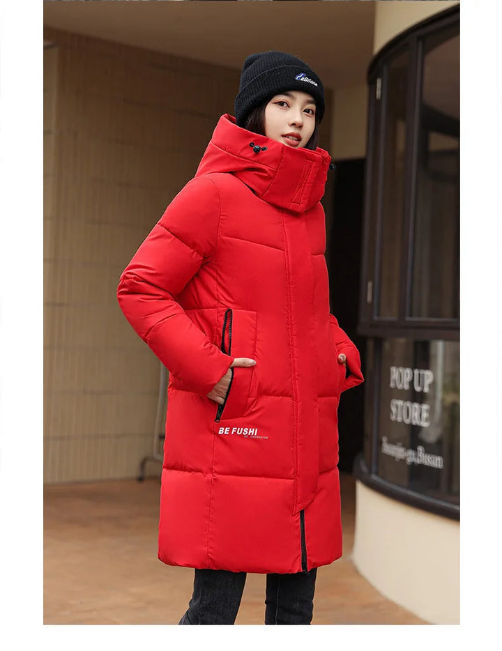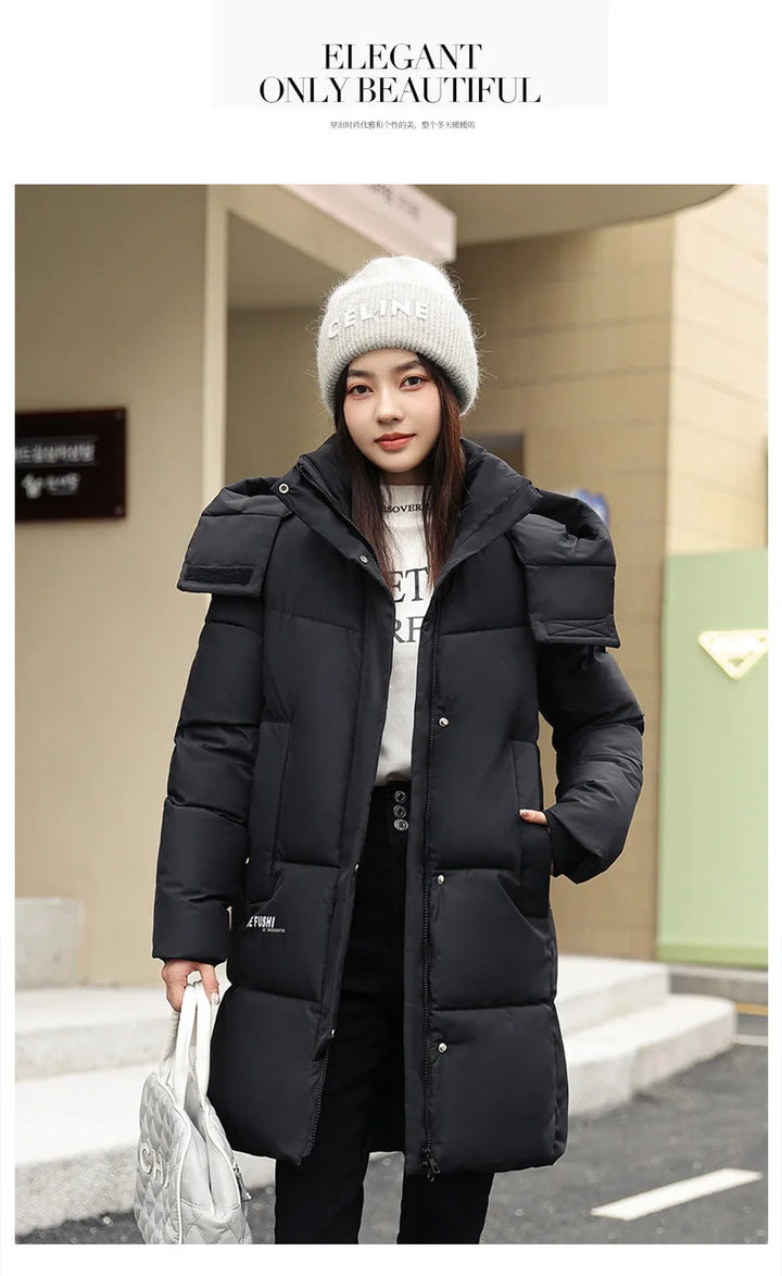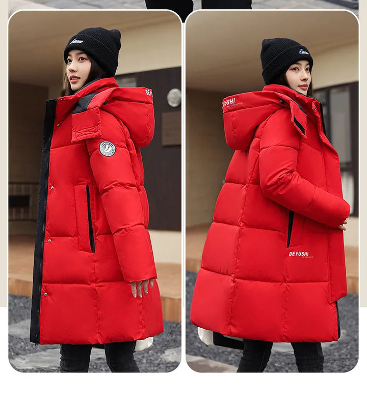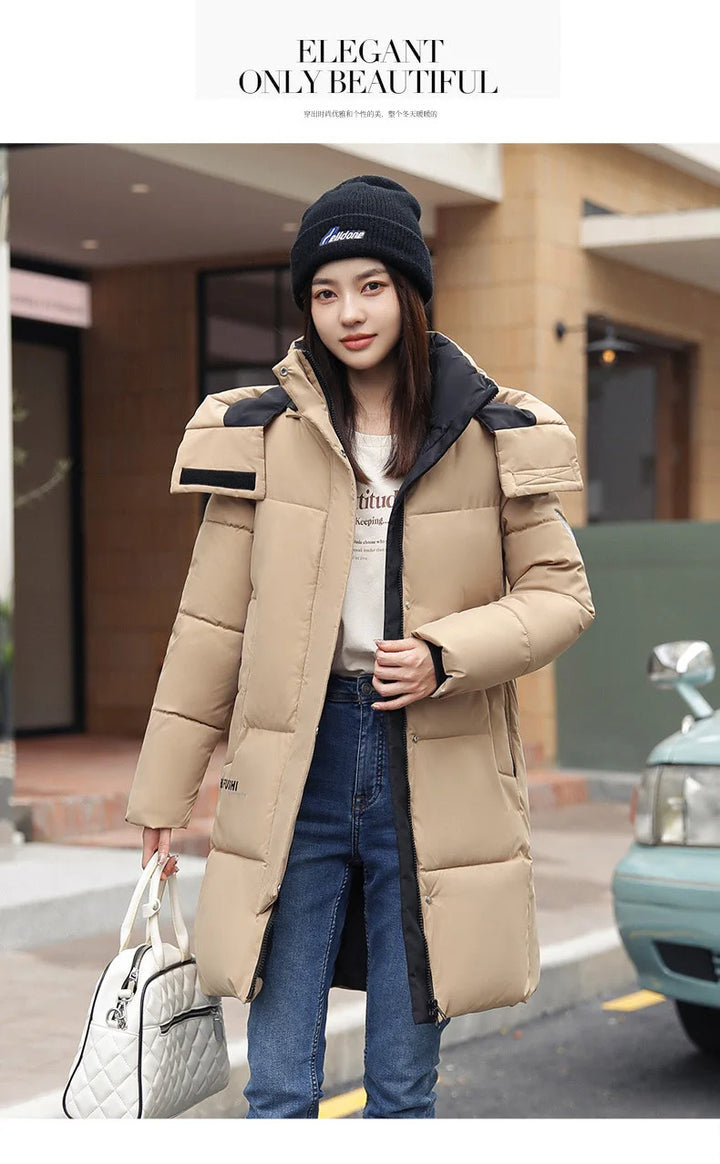 Winter Women's Padded Jacket Solid Zipper Fly Hooded Pockets Heavyweight Lady's Padded Coat Long Over-the-knee Coat For Female