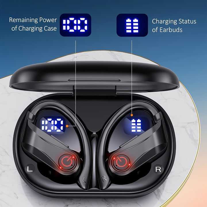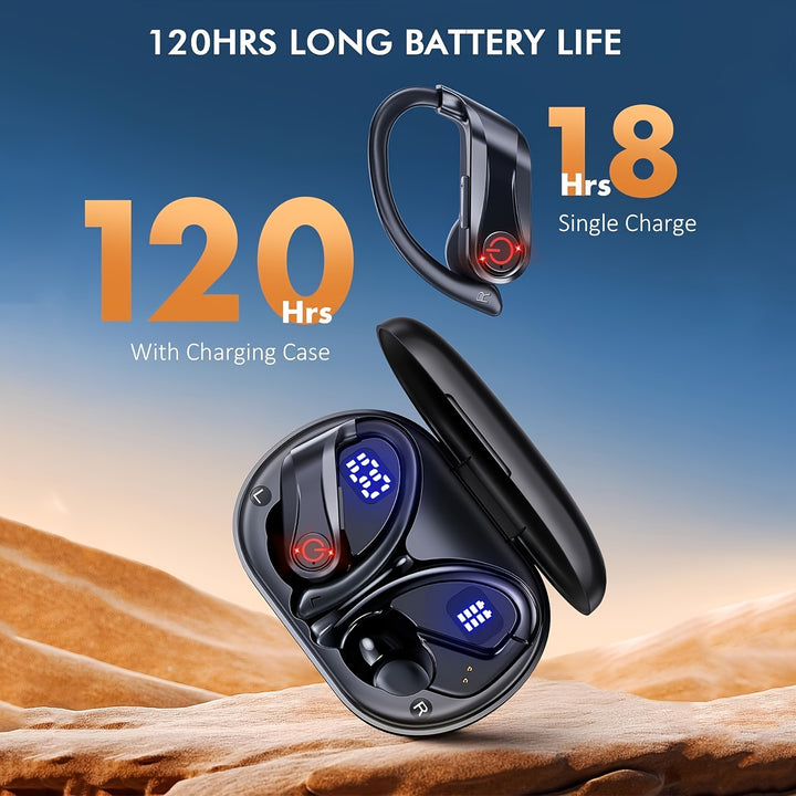 [Wireless Bluetooth Earbuds] 120hrs Bluetooth5.4 Wireless Bluetooth Earbuds | Sport Headphones with Deep Bass, ENC Noise Cancelling Mic, LED Display, USB-C Charging Case, Lightweight & Comfortable for Running, Fitness, Mobile