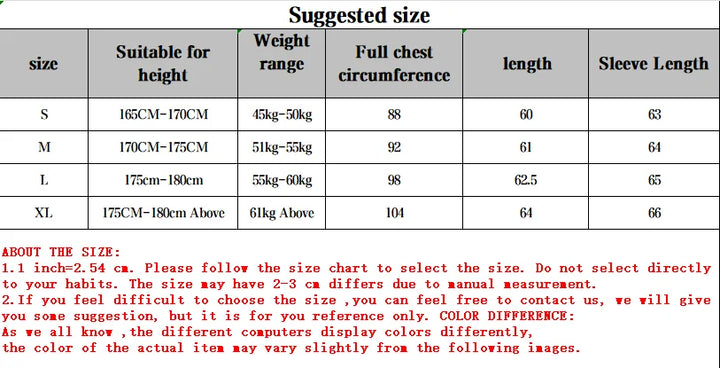 Important Sizing Information: